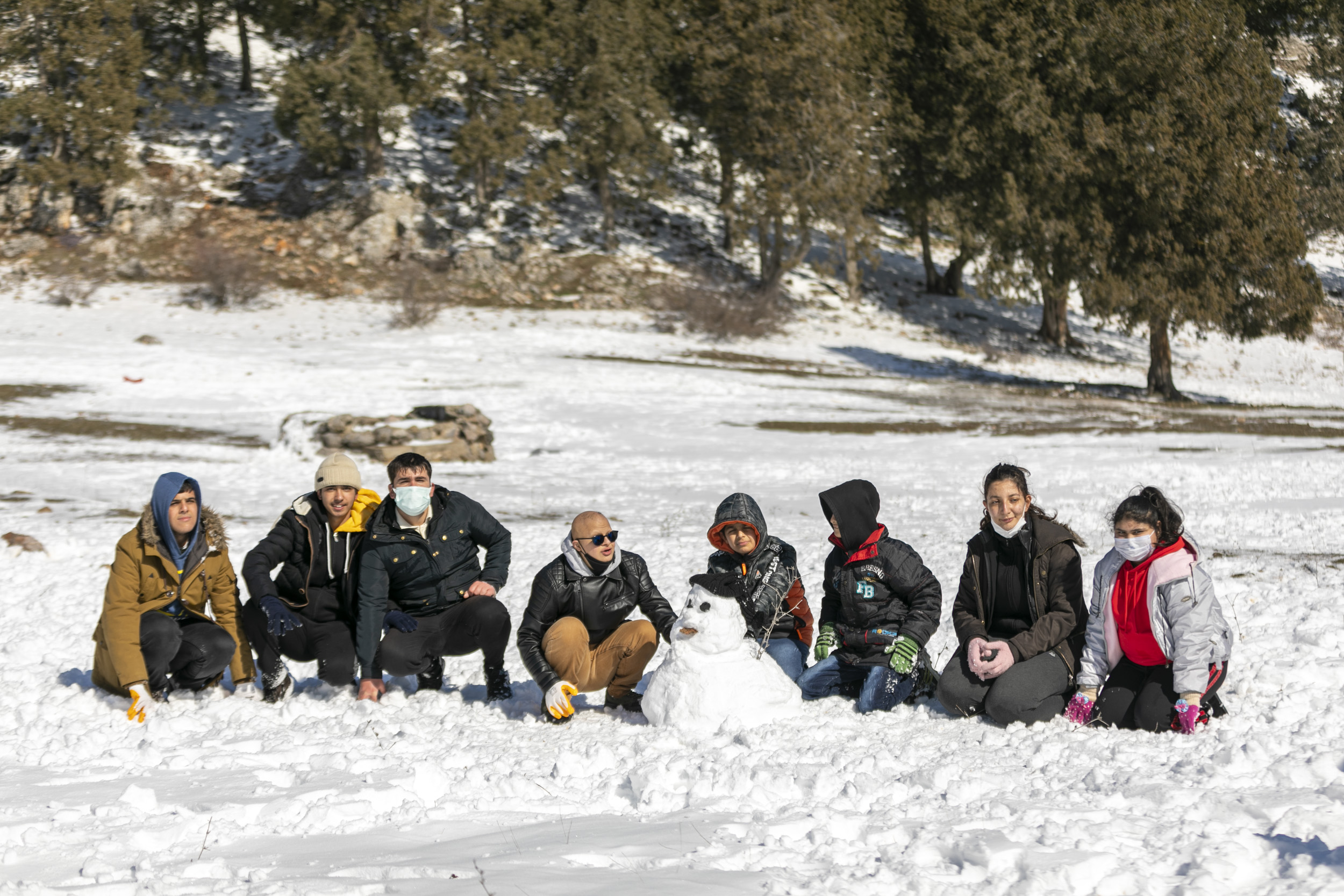 Kartopu oynayıp, kardan adam yaptılar