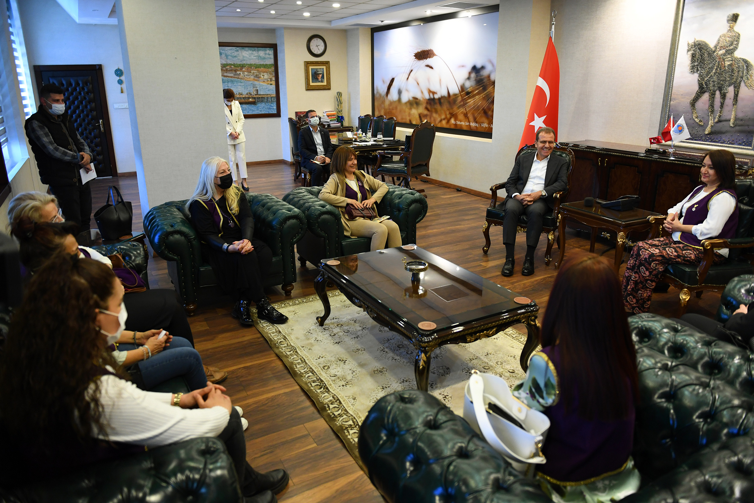 Türk Üniversiteli Kadınlar Derneği Mersin Şubesi temsilcileri, 8 Mart Dünya Kadınlar Günü kapsamında Başkan Seçer’i ziyaret ederek, kadın odaklı çalışmalarından dolayı teşekkür etti. Başkan Seçer, birçok alanda kadını önceleyen bir anlayışla hareket ettiklerini belirterek, “Ekonomik olarak kadının özgür olması çok önemli. Yani çok bağlayıcı bir şey. Kadın, ekonomik olarak özgür oldu mu diğer konularını daha farklı bir bakış açısıyla, bir özgürlük ruhuyla, bir psikolojik rahatlıkla aşabiliyor” dedi.