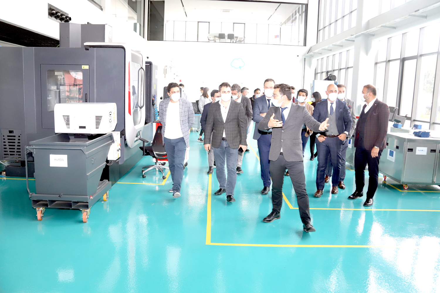 Ziyaret sırasında Model Fabrika ve İnovasyon Merkezi’ni tanıtan Başkan Tekli, ‘Mersin Tarsus Organize Sanayi Bölgesi (MTOSB), Mersin Ticaret Ve Sanayi Odası (MTSO), Birleşmiş Milletler Kalkınma Programı (UNDP), T.C Sanayi ve Teknoloji Bakanlığı işbirliğinde kullanıma sunulan Uygulamalı Yetkinlik Ve Dijital Dönüşüm Merkezi – Model Fabrika ve Yenilik Merkezi sanayicilere yenilikçi çözümler oluşturabilmek adına faaliyetlerine başladı. 3 bin 800 m2 kapalı alan olmak üzere 5 bin m2 toplam alan üzerinde faaliyetlere başlayan Model Fabrika ve Yenilik Merkezi’miz Türkiye’de aynı yapıda hizmete açılan ilk ve tek yer olma özelliğini taşıyor. 20 milyona yakın Avrupa Birliği desteği ile toplamda 25 milyonluk bir yatırım yapıldı. 19 modül üzerinden uygulamalı eğitimlere devam ediliyor. Çukurova Kalkınma Ajansı verimlilik konularında Model Fabrikamızla ortak çalışacak ve Model Fabrikayla çalışan firmalara 90 bin TL teşvik veriyor. Aynı zamanda KOSGEB Model Fabrika’dan eğitim ve danışmanlık alan firmalara 70 bin liraya kadar destek veriyor. Burada MTOSB yönetimi olarak herhangi bir makamımız yok, burası tamamen sanayicilerimize ait’ dedi.