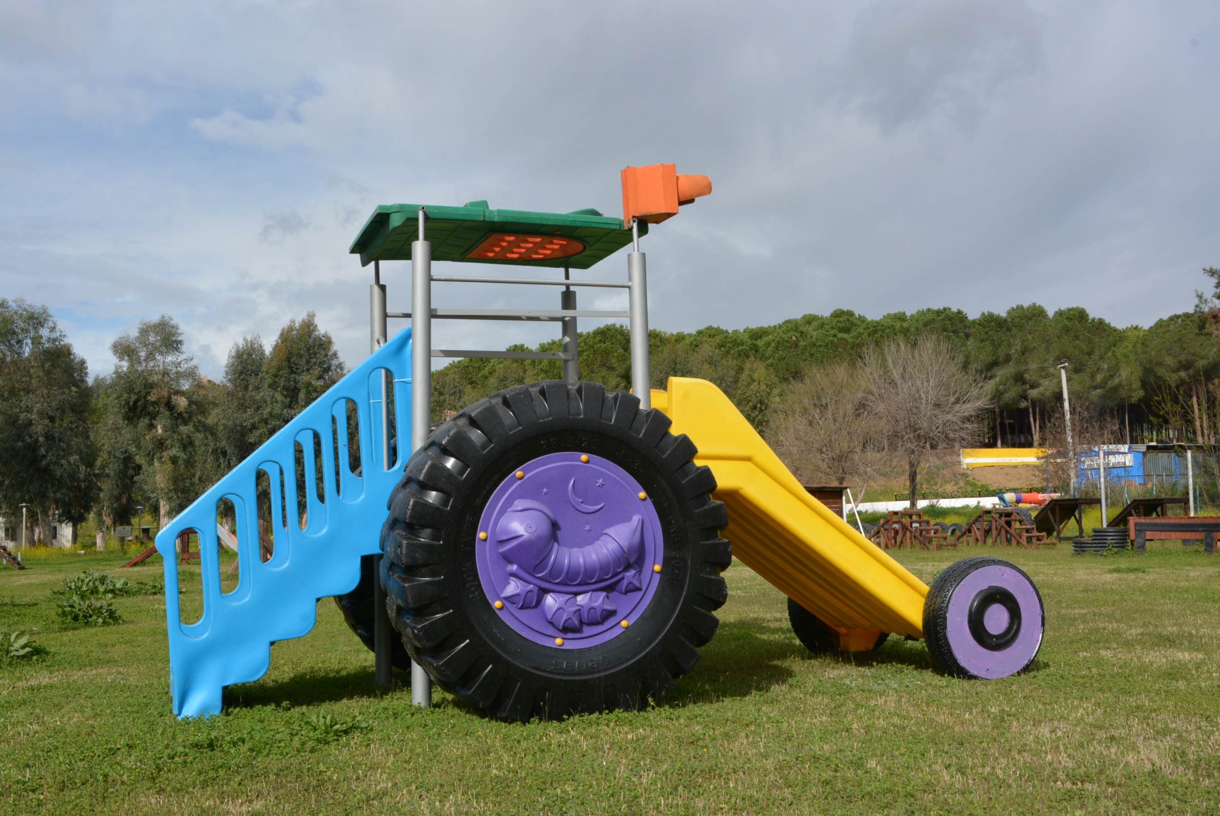 Hurda malzemelerden oluşturulan ve sempatik görüntüsü ile dikkat çeken traktör kaydıraklar da Gençlik Kampı’nda yer alan oyun alanındaki parkurlarda yerini aldı. Gençlik Kampı geri dönüşüm atölyesinde üretilen bir diğer ilgi çeken çocuk oyun aleti de tünel eklentili traktör kaydırak oldu. Benzer çalışmaların ortaya çıkması için geri dönüşüm atölyelerinde hummalı faaliyet yürütülüyor.