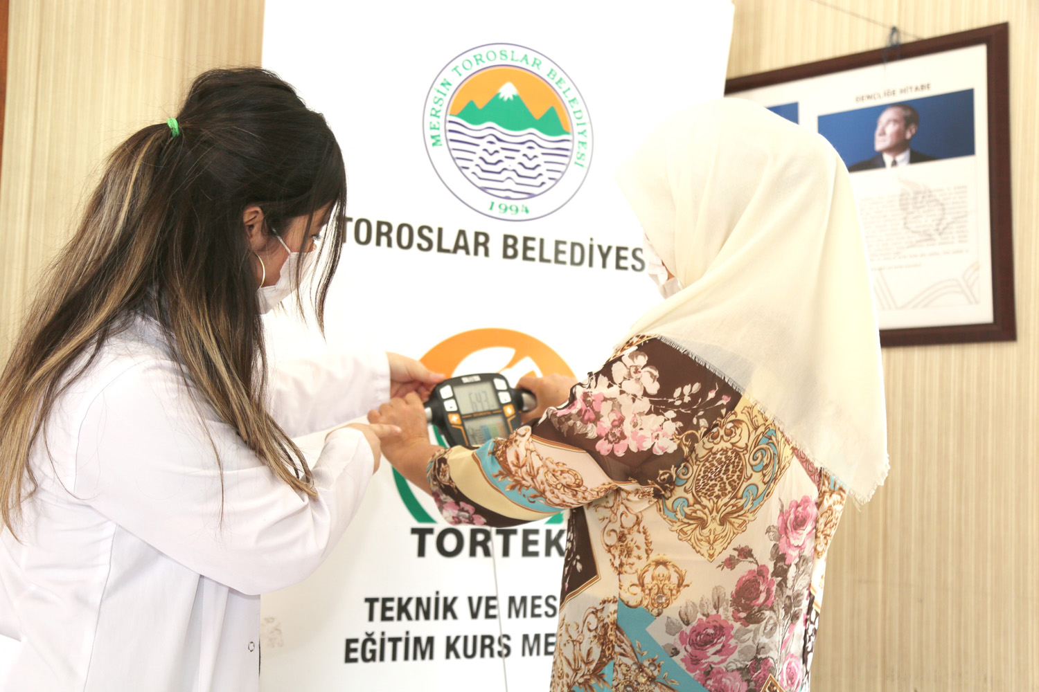 Toroslar Belediyesi Teknik ve Mesleki Eğitim Kursları (TORTEK) ile Toroslar İlçe Halk Eğitim Merkezi Müdürlüğü işbirliğinde açılan kursa katılanlar, kilo kontrollerini düzenli olarak yaptırarak sağlıklı ve dengeli beslenmenin yöntemlerini öğreniyor.