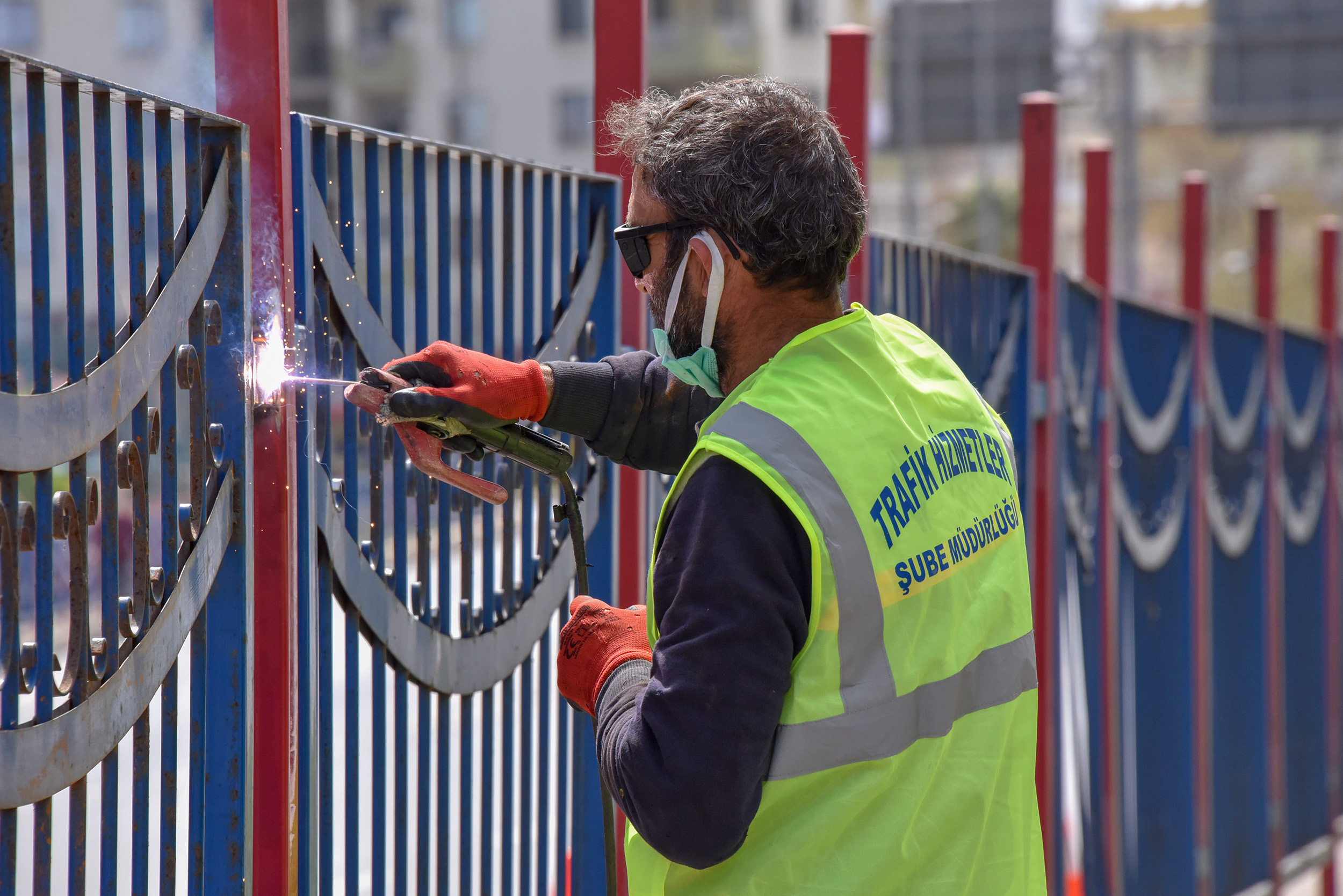 Ekipler yaya güvenliği için yapılan korkulukları geri dönüşümden imal ediyor. Park ve Bahçeler Dairesi bünyesinde atıl halde bulunan malzemeler yaya korkuluğu yapımı için kullanılıyor. Böylece geri dönüştürülebilecek malzemeler değerlendirilerek tasarruf sağlanmış oluyor.