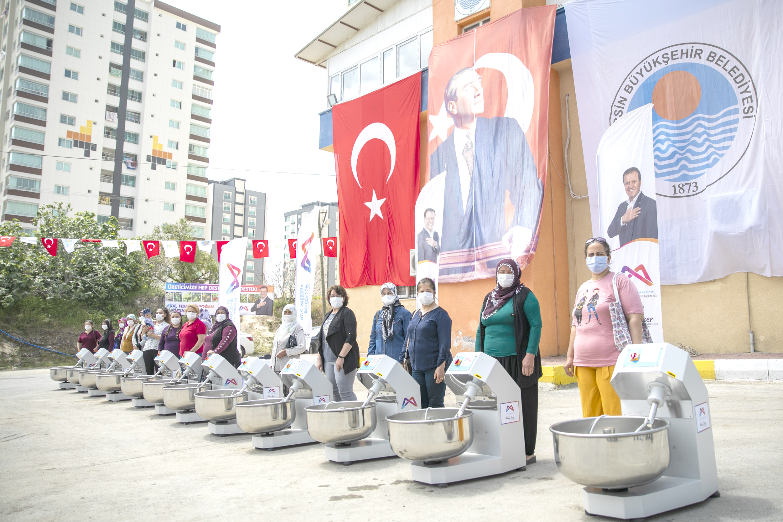Kırsal kalkınmanın sağlanması ve tarım sektörünün desteklenmesi için yürüttüğü projelerle dikkat çeken Mersin Büyükşehir Belediyesi, özellikle kadınlara yönelik üretim odaklı ekipman projelerini de aralıksız sürdürüyor. Yöresel lezzetlerin kolay şekilde imal edilmesi ve gelecek nesillere taşınması için bugüne kadar üzüm sıkma, badem soyma, zeytin boylama makineleri, süt soğutma tankı gibi ekipmanları üreticilere ulaştıran Büyükşehir Belediyesi, kırsal mahallelerde yaşayan kadınların yoğun bir şekilde talep ettiği hamur yoğurma makinelerini de ulaştırmaya devam ediyor.