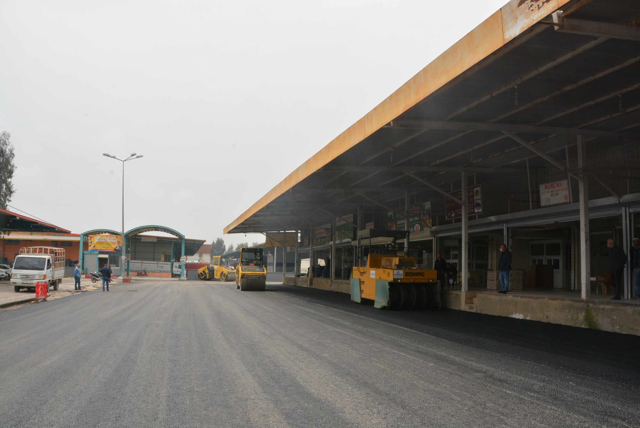 Mersin Büyükşehir Belediyesi, kent standartlarının yükselmesi adına birçok cadde ve bulvarda başlattığı asfalt atağını, meyve-sebze sektörü açısından önem taşıyan tesislerde de sürdürüyor. Büyükşehir Belediyesi’ne bağlı olan Tarsus Hal Kompleksi içerisinde geçtiğimiz günlerde Yol Yapım Bakım ve Onarım Dairesi’ne bağlı ekipler tarafından başlatılan zemin iyileştirme, yağmur suyu tahliye hatlarının MESKİ ekiplerince revize edilmesi ve asfalt faaliyetleri tüm hızıyla devam ediyor. Yoğun mesai harcayan ekipler, yaklaşık 27 bin ton asfalt serimi yapmayı planlıyor.