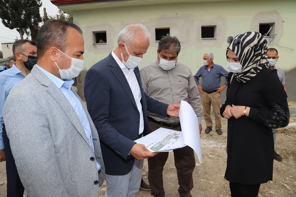 Akdeniz Belediye Başkanı Gültak, Başkan Yardımcısı Mustafa Arslan ve Bahşiş Mahallesi Muhtarı Hayrettin Uğurcan ile birlikte, Huzurkent Bahşiş Mahallesinde bulunan ve kapsamlı yenileme çalışması başlatılan çok amaçlı salonu ziyaret ederek, incelemelerde bulundu.