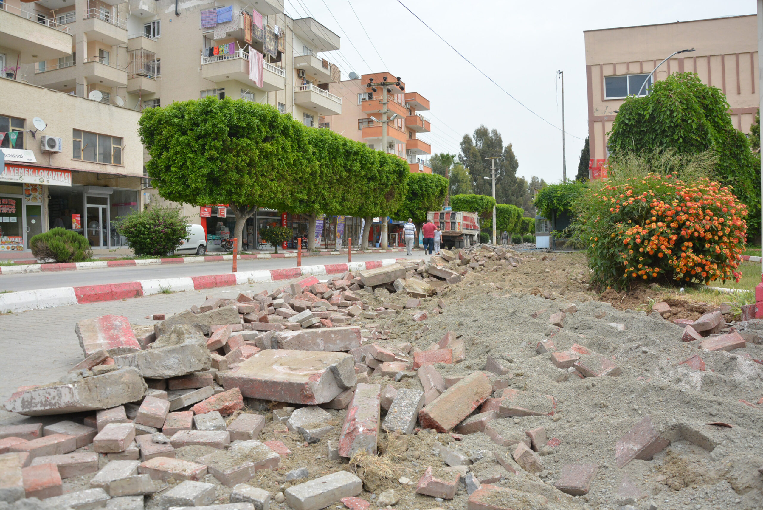 Yenice’nin Tarsus yönü girişinden başlayıp, Adana istikameti çıkışına kadar uzanan ve trafik akışının yoğun olduğu Atatürk Bulvarı üzerinde yıpranan kaldırım ve refüj taşlarının sökümü gerçekleştiriliyor. Ekipler, yıpranan yol zeminini de kazıyarak yenileyecek.
