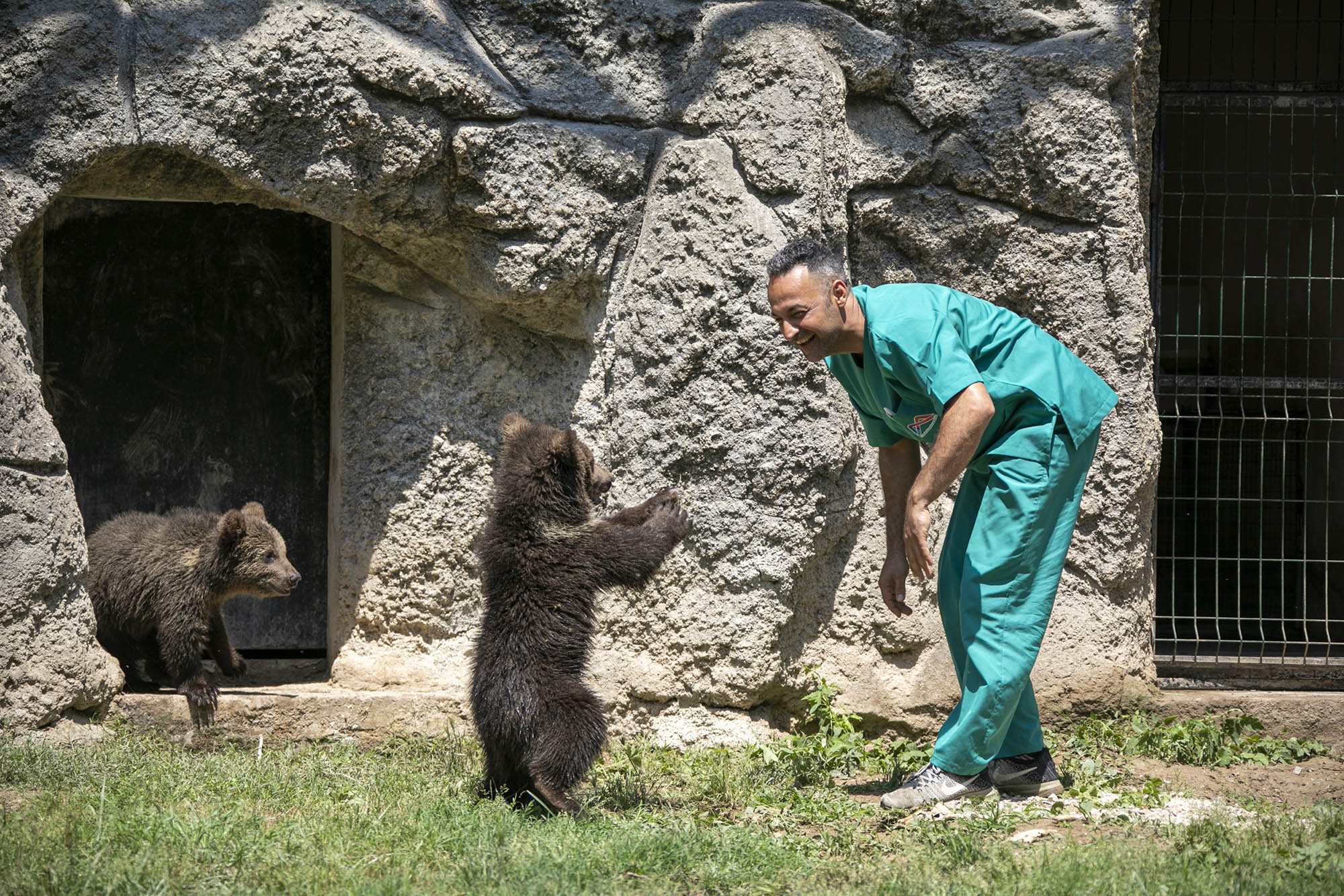 “4 ay önce dünyaya geldiler. Türkiye’de görülen türlerimizden boz ayı. Annelerinden ayıralı da yaklaşık 1 ay oldu. Bundan sonraki süreçte biz ilgileneceğiz. Şu anda kanatlı ürünleri, meyve, sebze; bunlarla besleniyorlar. Bir adet dişi ve bir adet erkek. Dişinin adını ‘İnci’, erkeğin adını ‘Güçlü’ koyduk. İnşallah isimleriyle yaşarlar diyelim. Bundan sonraki hayatlarında buradalar. Doğal yaşamlarına uygun bir şekilde ortam hazırlamaya çalışıyoruz. Hiçbir sağlık problemleri olmadı. Gayet düzenli ve dengeli bir şekilde besleniyorlar. Ortam refahları da çok iyi. O yüzden bir sağlık problemiyle karşılaşmadık. Zaten gerekli aşı ve vitamin desteklerini de yapıyoruz.”
