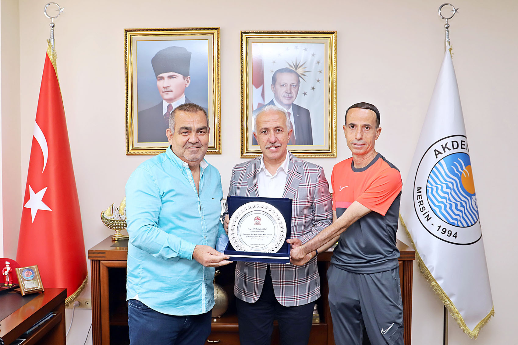 TÜFAD Şube Başkanı Mesut Bilir; zor günler yaşayan Futbol Antrenörü İzzet Kızgın’ı Belediye Spor’un renklerine bağlaması nedeniyle, Akdeniz Belediye Başkanı Mustafa Gültak’ı ziyaret ederek teşekkür plaketi takdim etti.