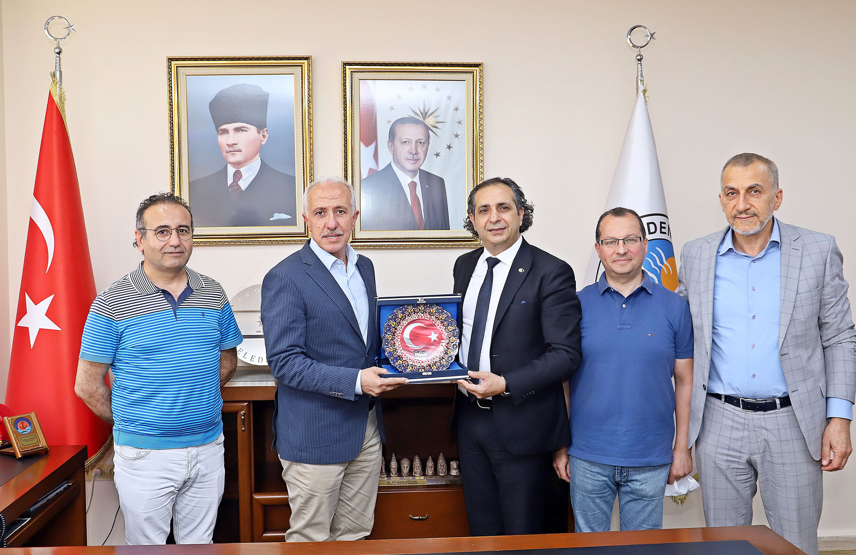 Türk ve Arap Ülkeleri İş İnsanları Derneği’nin (TURAB) 9’uncu Olağan Genel Kurulu sonucu Genel Başkanlığa seçilen Fahri Kuş ve yeni Yönetim Kurulu üyeleri, Akdeniz Belediye Başkanı M. Mustafa Gültak’ı makamında ziyaret etti.