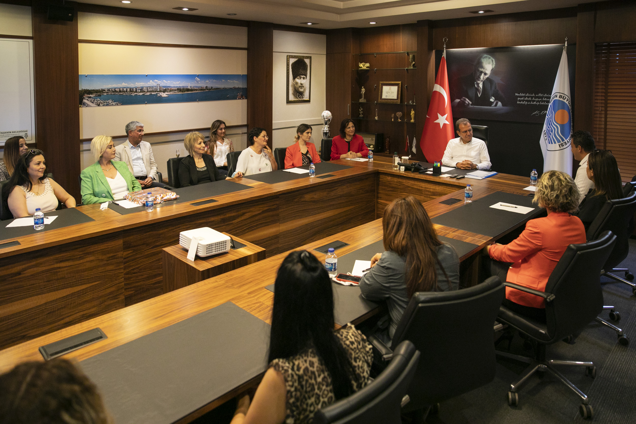 Mersin’de kadın emeğinin görünür kılınması için önemli çalışmalara imza atan Mersin Büyükşehir Belediye Başkanı Vahap Seçer, kadını önceleyen projelere de destek olmaya devam ediyor. Büyükşehir Belediyesi ana sponsorluğunda hazırlanan 33 Kadın Belgeseli’nde yer alan kadınlar, programın hazırlayıcısı Gazeteci Yazar Ufuk Cavlı ile birlikte Başkan Seçer’e teşekkür ziyareti gerçekleştirdi. Belgesel ekibi, Başkan Seçer’i 25 Haziran 2021 saat 19.00’da Noax Otel’de yapılacak olan galaya davet ederek, desteklerinden dolayı plaket takdim etti.