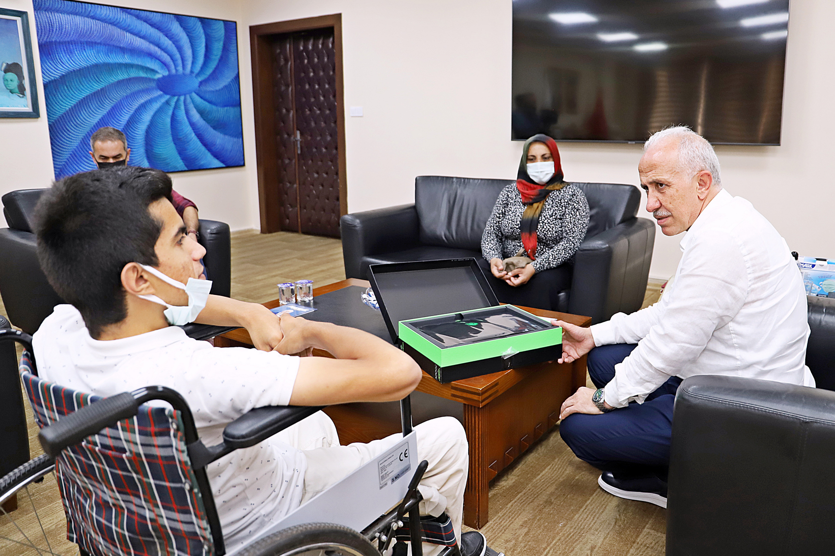 Aileyi daha önce ziyaret ettiğini ifade eden Başkan Gültak; “Bu ziyaretimizde Barış, yazılım ve kodlama alanında kendisini geliştirdiğini ancak daha da ilerleyebilmek için güçlü bir bilgisayara ihtiyaç duyduğunu dile getirdi. Bizler de onun bu isteğini kırmadık ve hayallerine ulaşmasına katkı sunmak için bugün kendisine güzel bir bilgisayar hediye ettik. Yazılım ve kodlamada kendisini daha çok geliştirip istediği üniversiteye de yerleşecek. Hem diploma hem yetenek bir araya geldiğinde hayat, insanın önüne çok daha güzel imkânlar sunar. Böylece hem ailesi, hem ülkesi ve milletine faydalı, engelli insanlarımıza da örnek bir genç olacak” dedi.