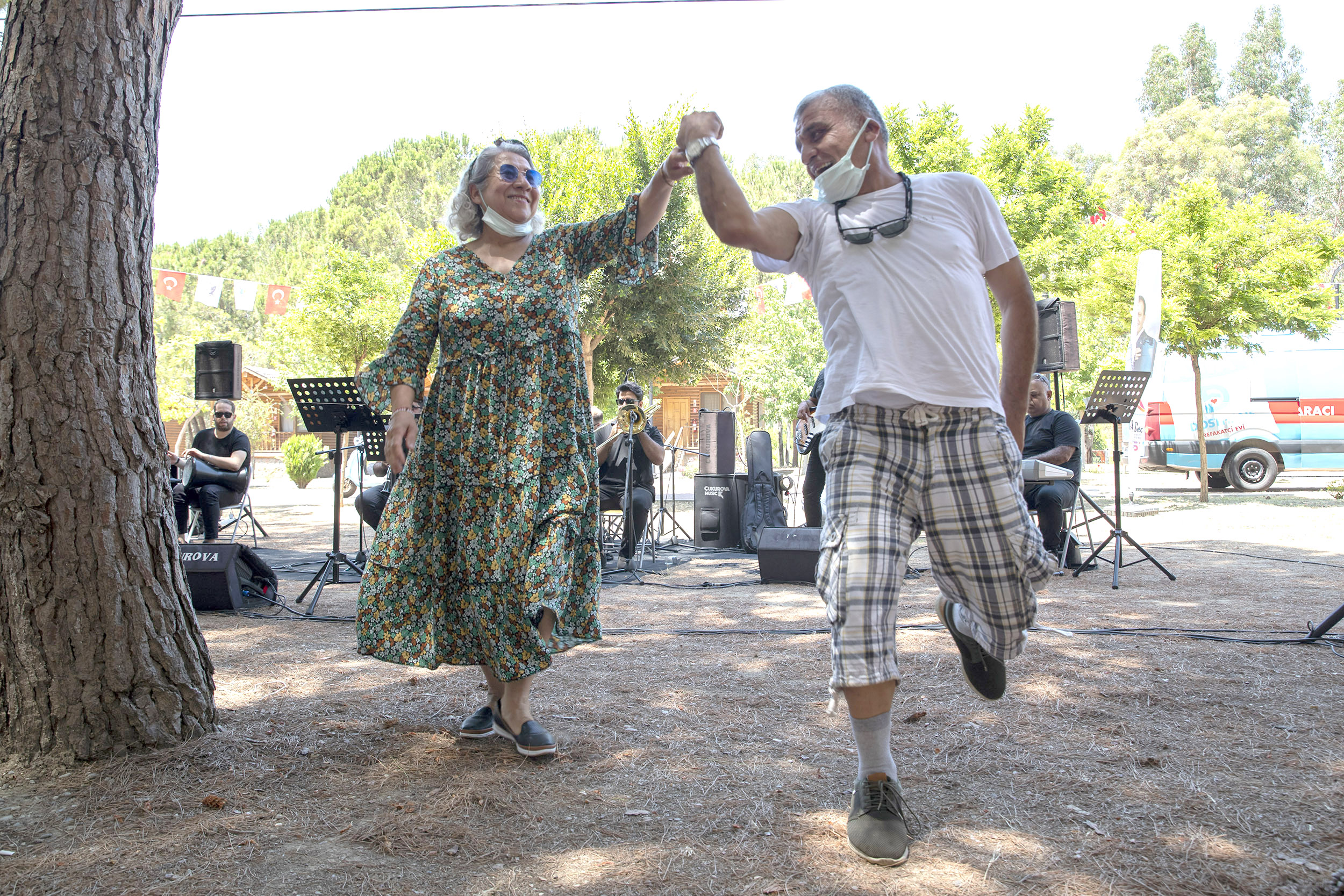 Tertemiz havada, ağaçların altında, pandemi kurallarına azami özen gösterilerek gerçekleşen etkinlikte çalınan hareketli müziklere eşlik eden bazı emekliler, oynayarak stres attı, arkadaşlarıyla birlikte zaman geçirmenin mutluluğunu yaşadı.