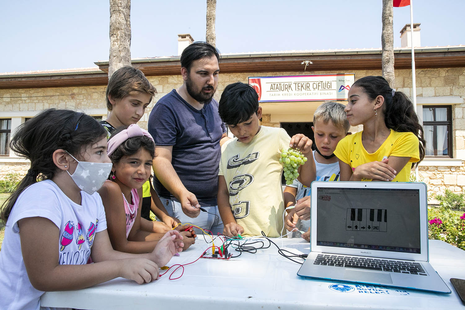 Forum Bağlantı Kavşağı ve Mezitli Belediyesi karşısından kalkan servislerle Gazi Çiftliği’ne gelen vatandaşlar, ilk kurucu ortağı Mustafa Kemal Atatürk olan Atatürk Tekir Çiftliği Tarım Kredi Kooperatifi’nin bulunduğu Gazi Çiftliği’nde yaşatılan değerler karşısında duygulu anlar yaşadı. 65 kişinin katılımıyla toplu olarak ilk ziyaretçilerini ağırlayan Gazi Çiftliği’nde, Ata topraklarının üretici kadınları ile faaliyetleri merak eden ve merkezden gelen ziyaretçiler buluştu. Geziye aileleriyle katılan çocuklar da keyifli vakit geçirdi. Gazi Çiftliği içerisinde bulunan Teknoloji Atölyesi ekibi çocuklar için drone uçurma, elektronik kartlar aracılığıyla meyvelere, birbirlerine dokunarak ses elde etme gibi aktiviteler düzenledi.