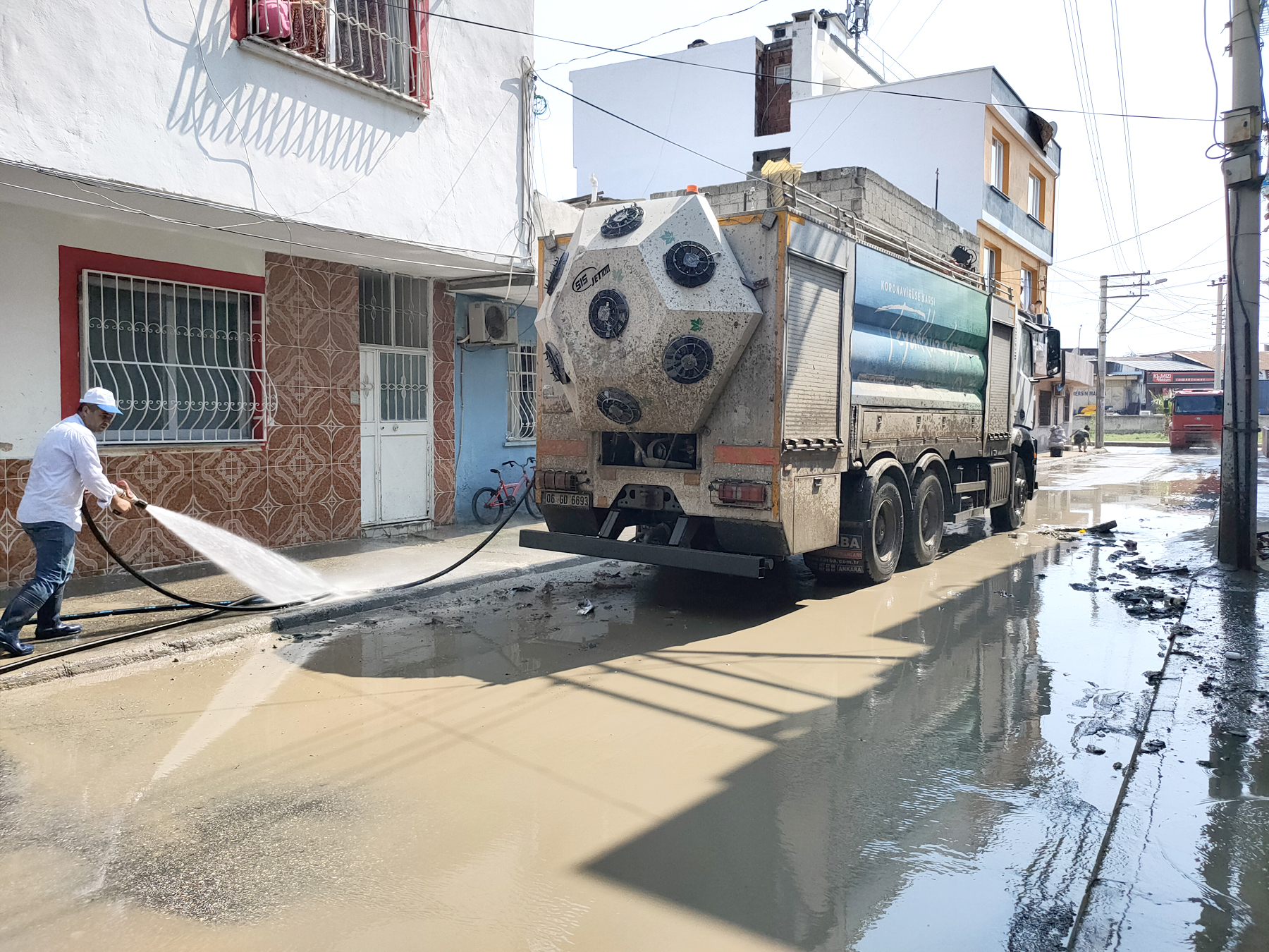Akdeniz Belediyesi’ne bağlı Fen İşleri, Park ve Bahçeler ile Çevre Koruma ve Kontrol Müdürlüğü ekipleri, koordineli bir şekilde, kent merkezi ile ilçenin farklı mahallelerinde su basan ev ve işyerlerinde motopomplar yardımıyla su tahliye çalışması yaptı. Aşırı yağışlar ve oluşan sel soncu çamura bulanan cadde, sokak ve yolların temizliğini iş makineleriyle gerçekleştirip, bazı sokaklarda devrilen ağaçları kaldıran ekipler, tıkanan giderleri açtı, ardından da yıkama çalışması yaptı.
