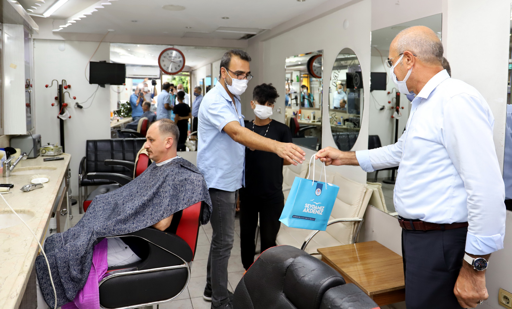 Akdeniz Belediyesi Başkanvekili Aydın Egin, beraberinde Mersin Berberler ve Kuaförler Odası Başkanı Doğan Gündüz ile birlikte, ilçe sınırlarında hizmet veren berber ve kuaför salonlarına, Koronavirüs salgını ile mücadelede önemli bir etkiye sahip olan dezenfektan dağıttı. Esnaflar, salgınla mücadelede gösterilen kararlılık ve kendilerine sağlanan destekler nedeniyle teşekkür ettiler.