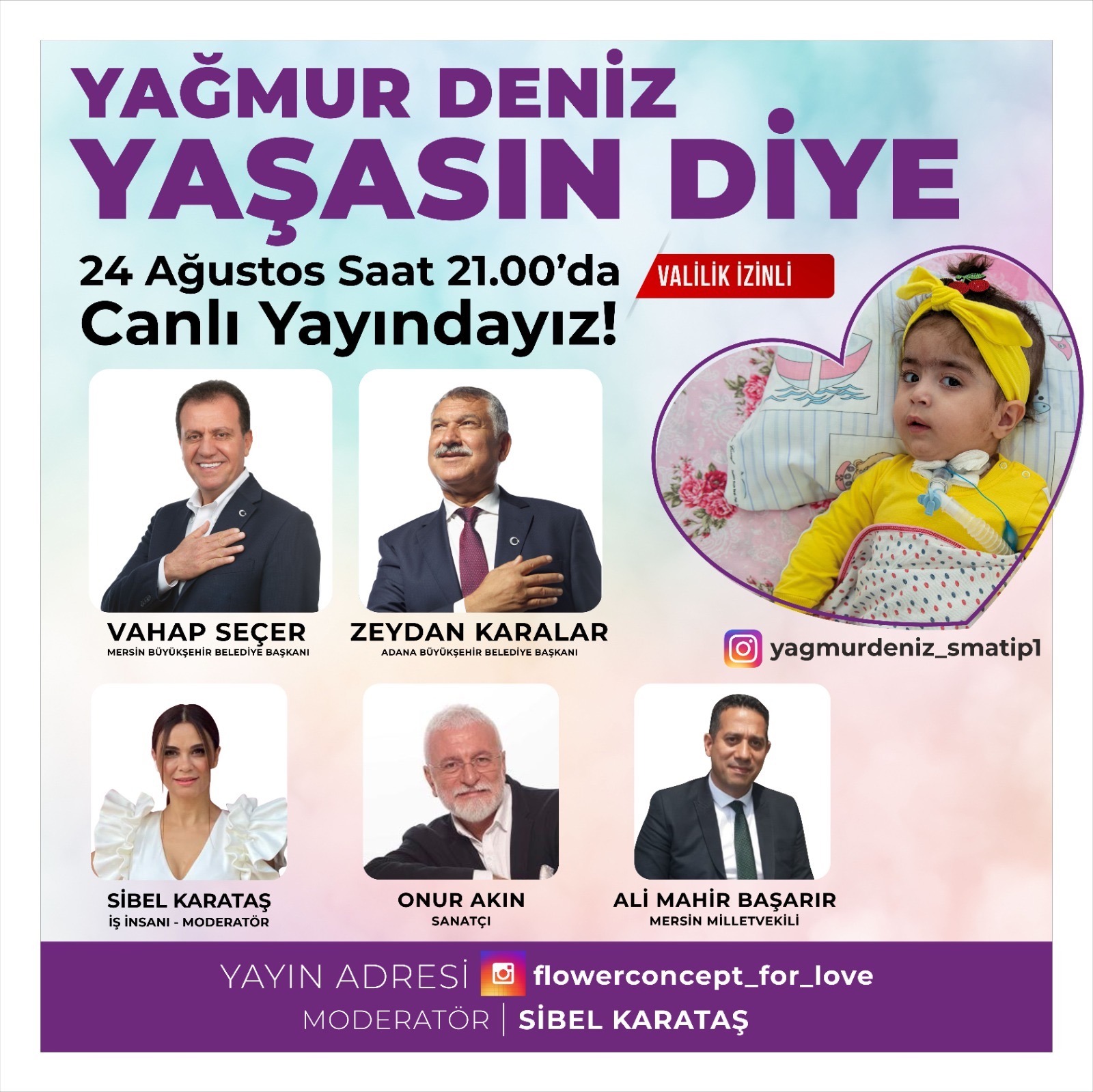Mersin Büyükşehir Belediye Başkanı Vahap Seçer, Türkiye’nin en küçük SMA hastalarından Asrın Efe Gülkan’ın ardından bu kez de Mersin’de yaşayan Serap ve Mehmet Tok çiftinin minik yavrusu SMA Tip 1 hastası Yağmur Deniz için “Haydi dayanışmaya” dedi. Başkan Seçer, İş İnsanı Sibel Karataş’ın moderatörlüğünde Instagram üzerinden yapılan canlı yayında, 25 aylık Yağmur Deniz’in sağlığına kavuşması için destek çağrısı yaptı.