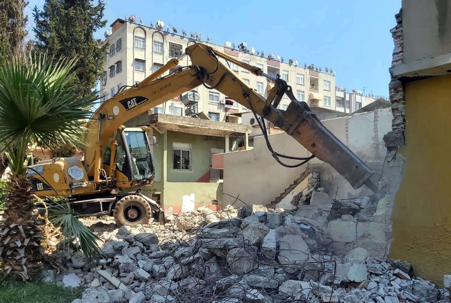 Akdeniz Belediyesi; vatandaşların can ve mal güvenliğini tehdit etmesinin yanı sıra, kentte görsel kirlilik yaratan, bu tür yapıları oyun alanına çeviren çocuklar için büyük tehlikeler barındıran, kimi zaman da sosyal sorunlara yol açarak vatandaşların huzurunu bozan terk edilmiş harabe haldeki yapıların yıkımına devam ediyor. Fen İşleri Müdürlüğü ekipleri; yasal sürecin bitmesinin ardından Bahçe Mahallesi 4615 Sokak Numara 15’te adresinde bulunan sahiplerince terk edilmiş 2 katlı binanın yıkımını iş makineleri yardımıyla kontrollü bir şekilde gerçekleştirdi.