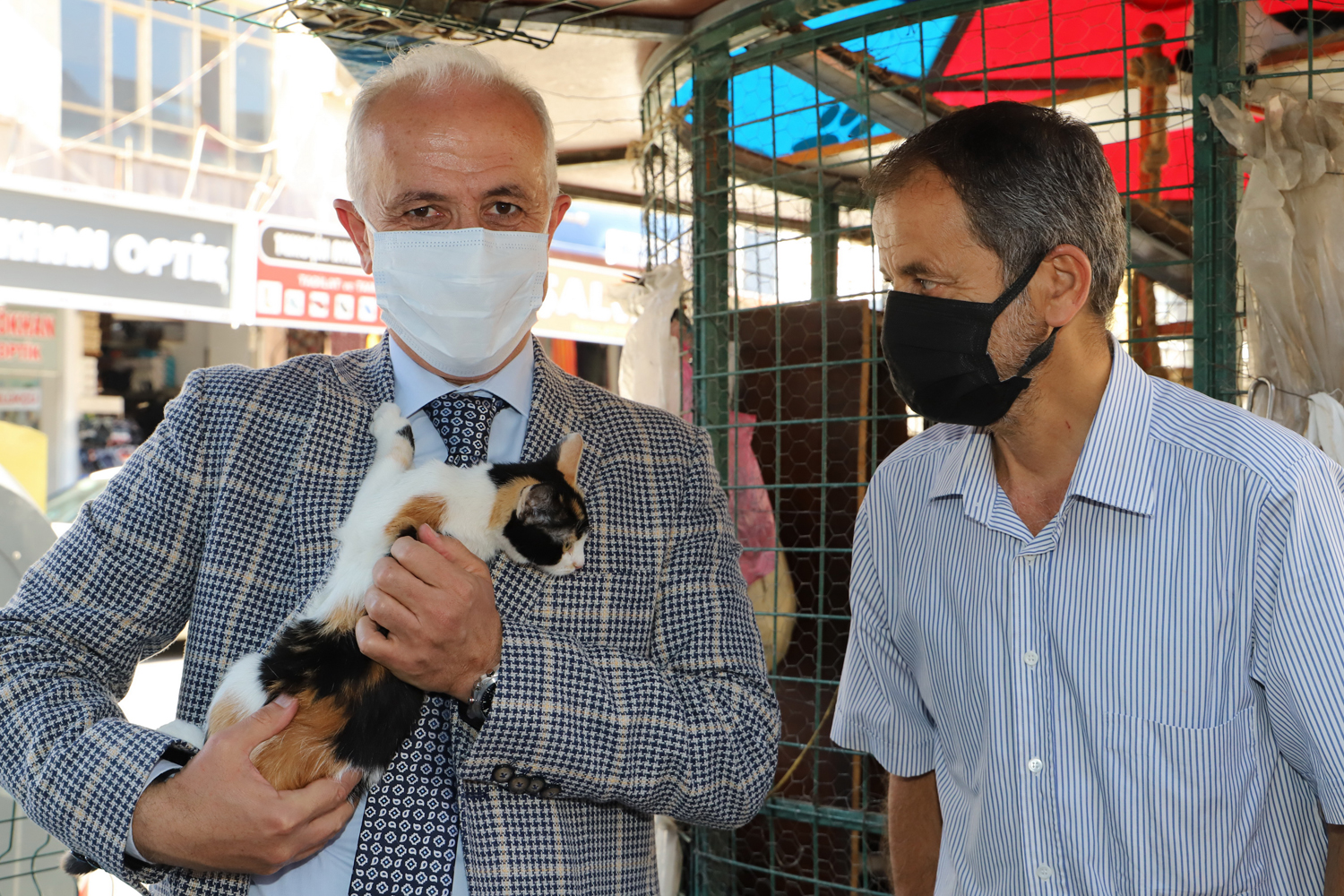 Başkan Gültak, ‘4 Ekim Hayvanları Koruma Günü’ nedeniyle düzenlenen etkinlikte can dostlara mama ve yuva dağıttı; gün nedeniyle ayrıca Karamel isimli köpek ile Oğulcan isimli kediyi de makamında ağırlayıp besledi.