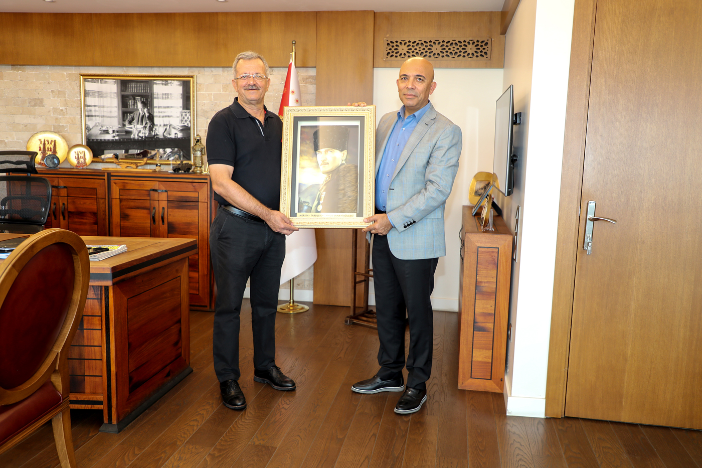 Mersin Tarsus Organize Sanayi Bölgesi Başkanı Sabri Tekli, Mersin İl Emniyet Müdürlüğü görevini yürütürken, Cumhurbaşkanlığı Kararnamesiyle İzmir İl Emniyet Müdürlüğü görevine atanan Mehmet Şahne’yi makamında ziyaret ederek hayırlı olsun dileklerini iletti.
