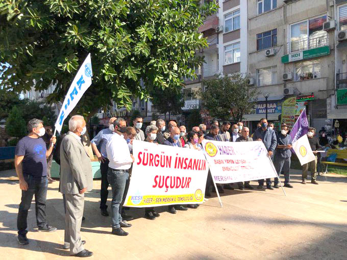 Mersin’de sendika üyelerinin PTT Başmüdürü Kaan Uysal tarafından yoğun biçimde ayrımcılığa uğradığını belirten Antmen “Silifke PTT Merkez Müdürlüğünde görev yapan Haber-Sen işyeri temsilcisi Bülent Yasin Bal evinden 1250 kilometre uzaklıkta Ardahan Hanak’a, Gürcistan sınırına sürgün edilmiştir. İki çocuk babası olan Bülent Yasin Bal’ın aile düzeni hedef alınmaktadır. Yine Mersin PTT Başmüdürü Kaan Uysal tarafından sendika üyesi Mehmet Tanrıverdi, çalıştığı Toroslar Posta Dağıtım Müdürlüğünden Tarsus Posta Dağıtım Müdürlüğüne sürgün edilmiştir” ifadelerini kullandı.