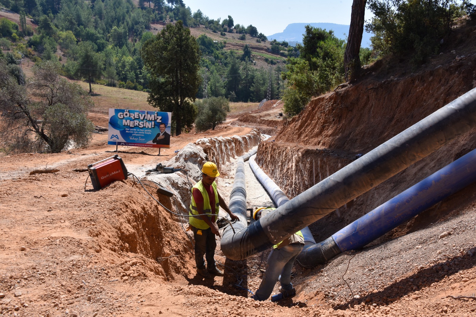 Mersin Büyükşehir Belediyesi Mersin Su ve Kanalizasyon İdaresi (MESKİ) Genel Müdürlüğü, Tarsus ilçesi Gülek Mahallesi’nde 100 metreküp hacimli biriktirme deposu, içmesuyu terfi istasyonu ve terfi hattı yapım işine devam ediyor.