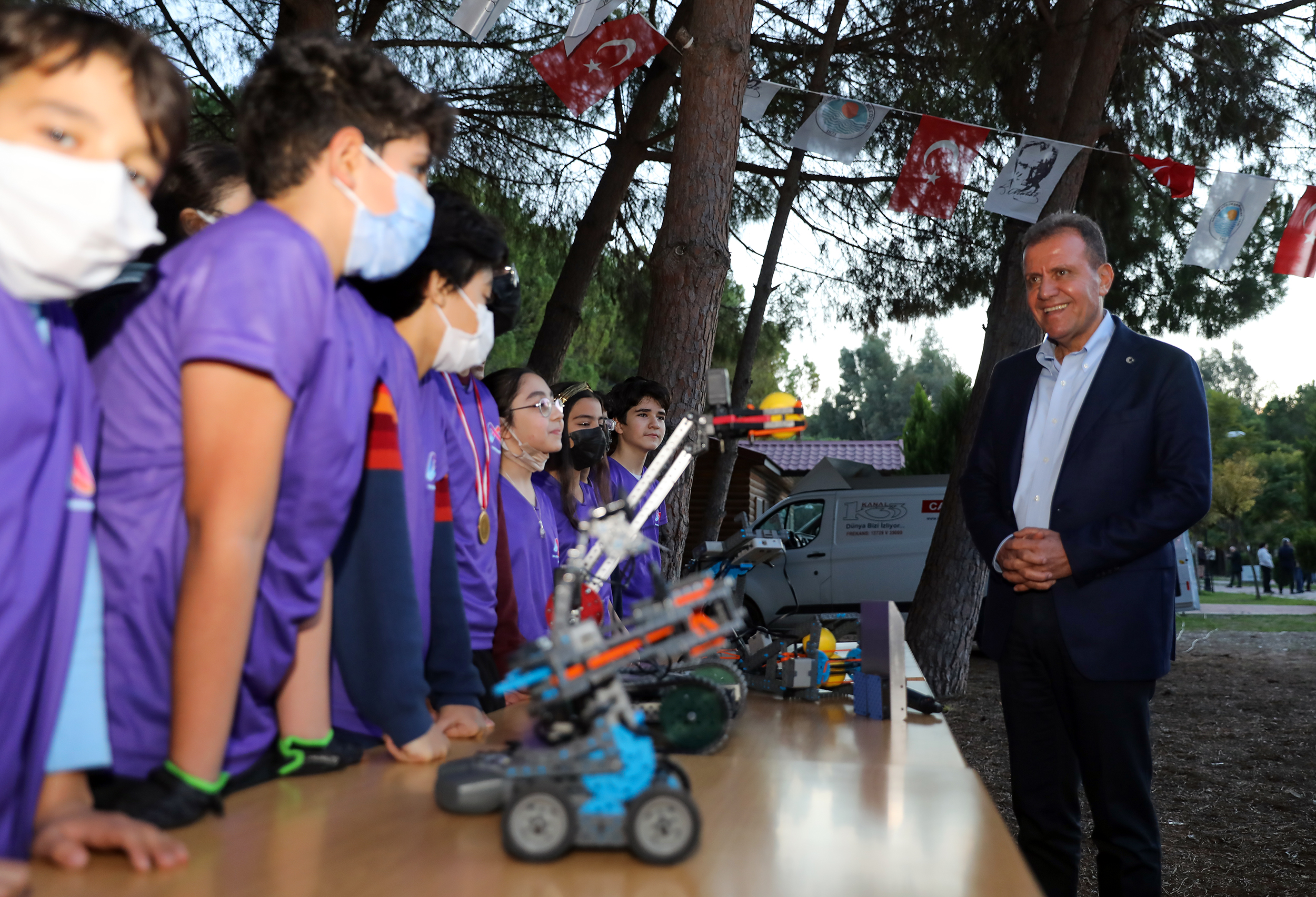 Geliştirilen robotlar üzerine gençlerle sohbet eden Başkan Seçer, “Güzel işler yapıyorsunuz onu da ödüllendirdiler. Gayet güzel, başarılı bir sonuç aldınız, kutluyorum. Çalışmaya devam” dedi. Gençlere, “Öğrendikçe daha fazla öğrenme isteği oluyor mu?” sorusunu yönelten Başkan Seçer, gençlerden “Evet” yanıtını aldı. Başkan Seçer, “İnsan öğrendikçe çok daha fazla şey öğrenmek ister. Zaten icatlar da öyle olur. Yenilikler, keşifler öyle oluyor. İnsanın geninde olan o merak, araştırma, yeni bir şey keşfetme onun sonucunda oluyor. Size başarılar diliyorum. Kendinize çok iyi bakın” dedi.
