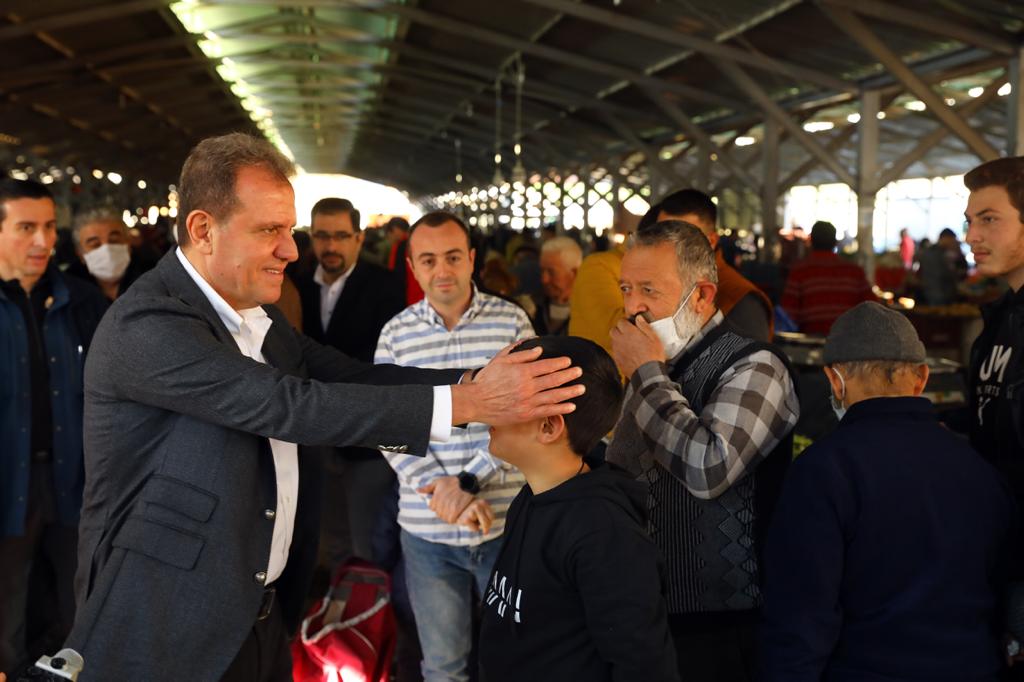 Başkan Seçer, Güneykent Pazar Yeri’nde esnafla ve vatandaşlarla sohbet etti