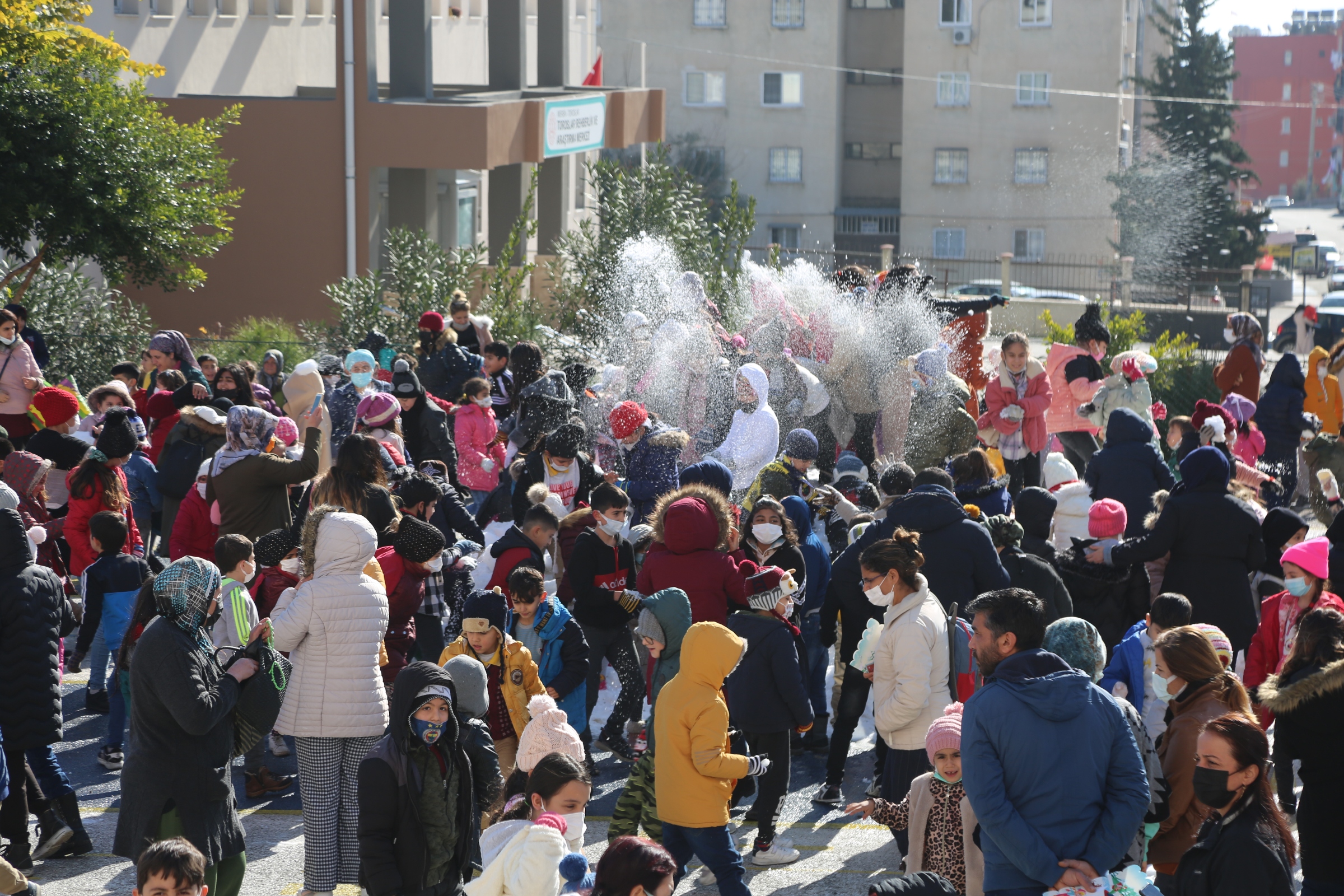 Toroslar Belediye Başkanı Atsız Afşın Yılmaz, karne heyecanı yaşayan öğrencileri “kar” sürpriziyle sevindirdi.