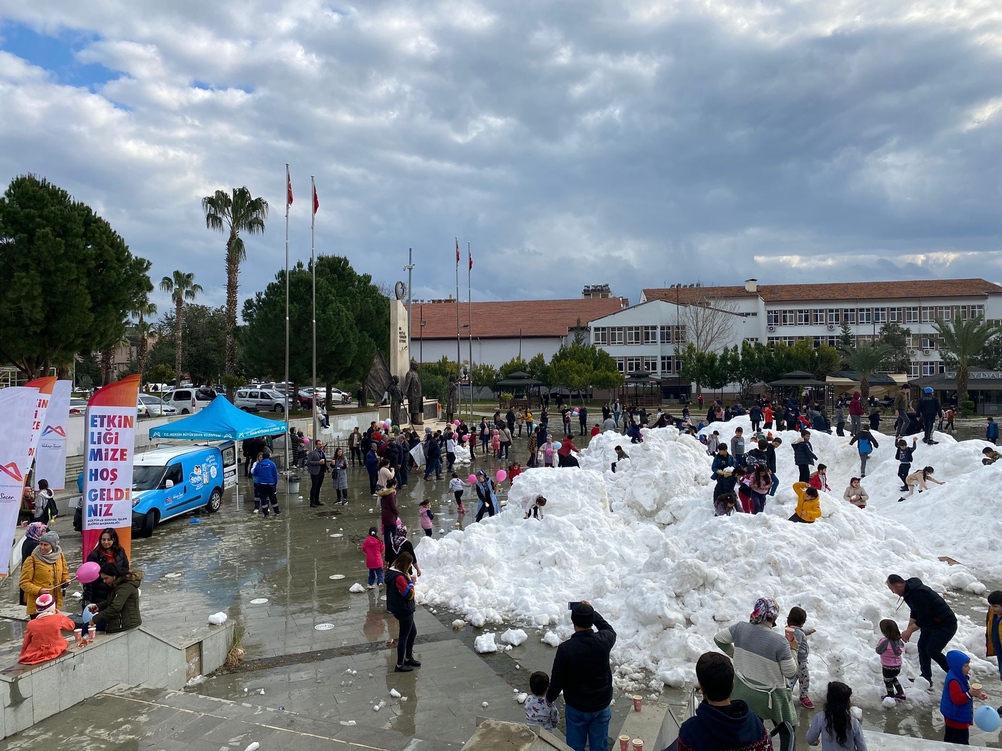 Büyükşehir Belediyesi Muhtarlık İşleri Dairesi ekipleri de Anamur’da karne heyecanı yaşayan çocuklara kar sürprizi yaptı. Ekipler tarafından Anamur Cumhuriyet Meydanı’na dökülen 7 kamyon kar, karne heyecanı yaşayan çocukların neşesine neşe kattı. Ardından Anamur Halk Eğitimi Merkezi Müdürlüğü Güleç Mahallesi Özel Eğitim Merkezi’nin bahçesine de 1 kamyon kar döken ekipler, özel gereksinimli bireylere karla oynama sevinci yaşattı. Ekipler, kar eğlencesinin ardından çocuklara 1 Ekmek 1 Çorba Projesi kapsamında sıcak çorba dağıtımı gerçekleştirdi.