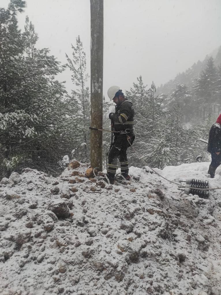 Elektrik dağıtım hizmetinin kesintisiz devam etmesi için 24 saat görev yapan Toroslar EDAŞ ekipleri, kar kalınlığının bir metreye ulaştığı zorlu arazi koşullarında çalışmalarını sürdürüyor.