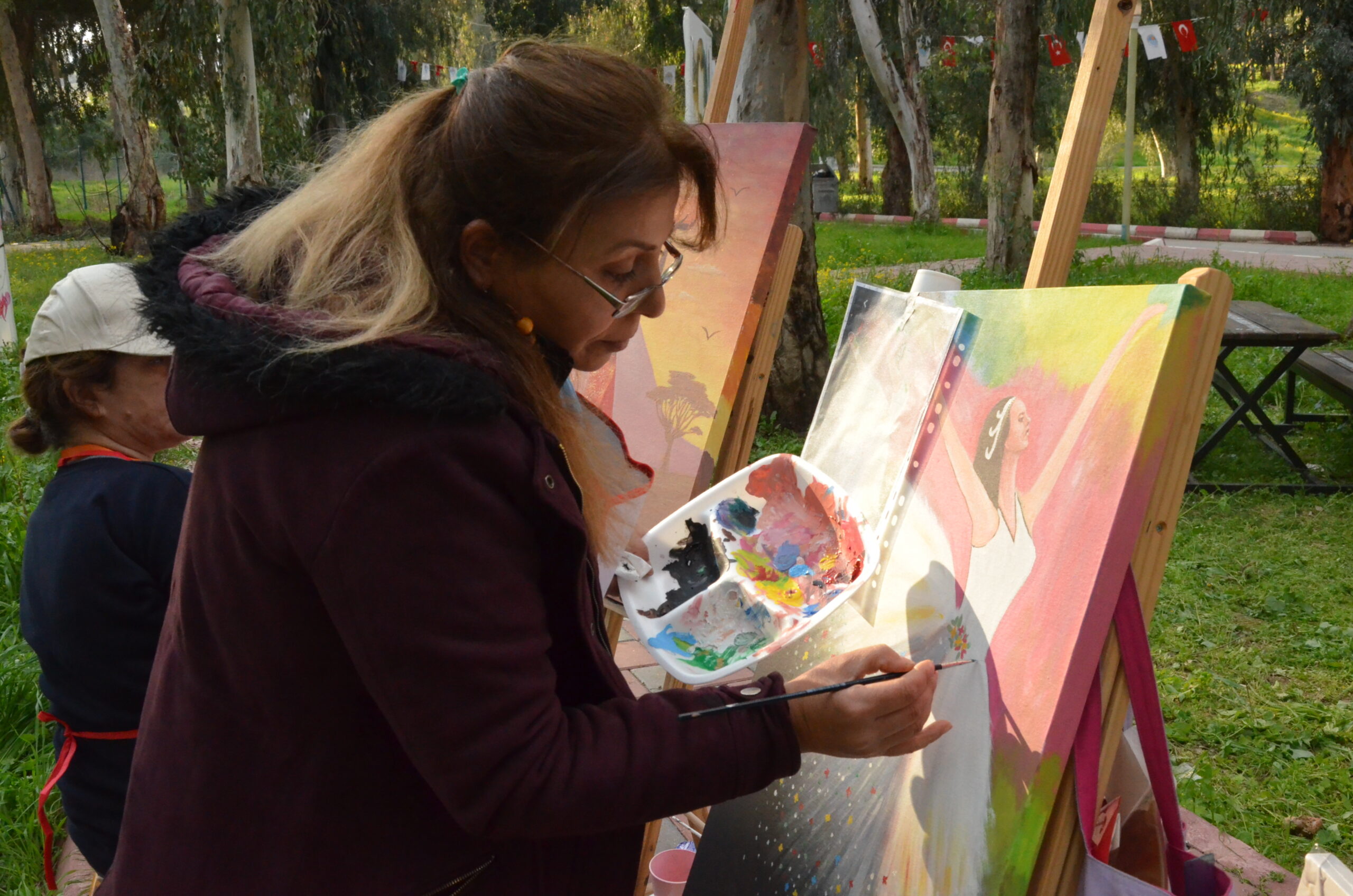 Büyükşehir Belediyesi’nin desteklediği Tarsus’a Değer Katanlar Kurulu (TADEKA) Plastik Sanatlar Komisyonu’nun, 8 Mart dolayısıyla düzenlediği ve kendi malzemelerini getiren tüm sanatçıların katılabildiği etkinlik renkli görüntülere sahne oluyor. Erkek ressamların da katılım sağlayabildiği programda, tuvaller üzerine 80 eser çiziliyor. Tarsus, Mersin, Adana ve Kayseri’den 40 kadın ressamın 3 gün boyunca kampta misafir edileceği programa günübirlik katılmak da mümkün.
