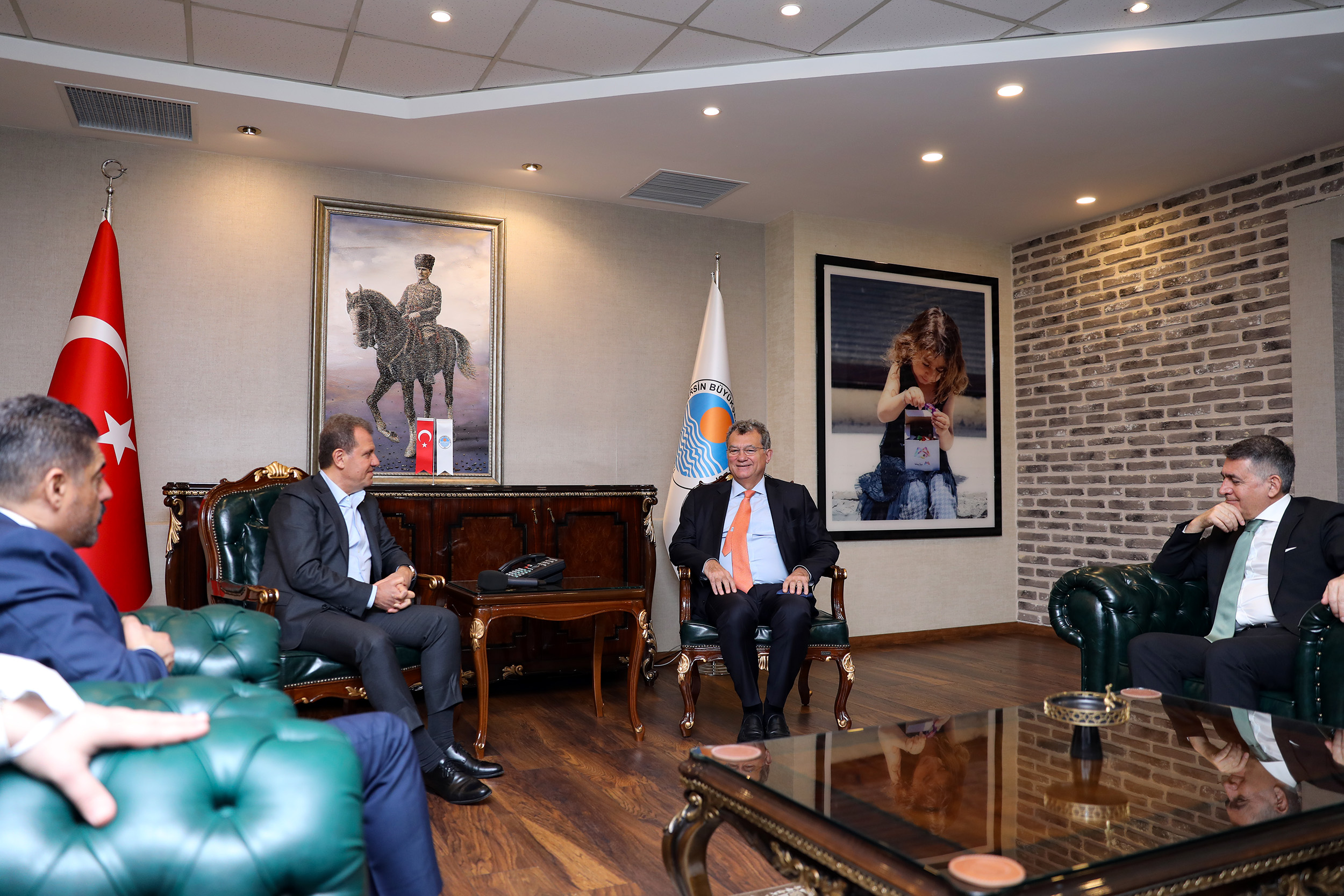 Mersin Büyükşehir Belediye Başkanı Vahap Seçer, salgın sürecinin ardından Anadolu ziyaretlerine Mersin’den başlayan Türk Sanayicileri ve İş İnsanları Derneği (TÜSİAD) Yönetim Kurulu Başkanı Simone Kaslowski ve Türk Girişim ve İş Dünyası Konfederasyonu (TÜRKONFED) Yönetim Kurulu Başkanı Orhan Turan ile beraberindeki heyeti ağırladı. Yerel yönetimler olarak iş dünyasının yanında olduklarını, Mersin’de birçok imkanın bulunduğunu vurgulayan Başkan Seçer, “Hangi alanda yatırım yapmak isterseniz burada bu imkan var” dedi.