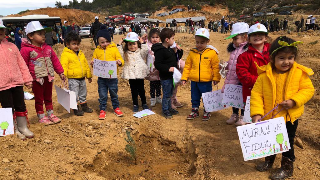 Mersin’de, Davultepe Orman İşletme Şefliği Kuyuluk Mevkiinde 36 okuldan 1750 öğrenci katılımıyla 10 hektar alanda 4 bin adet fidan toprakla buluştu.