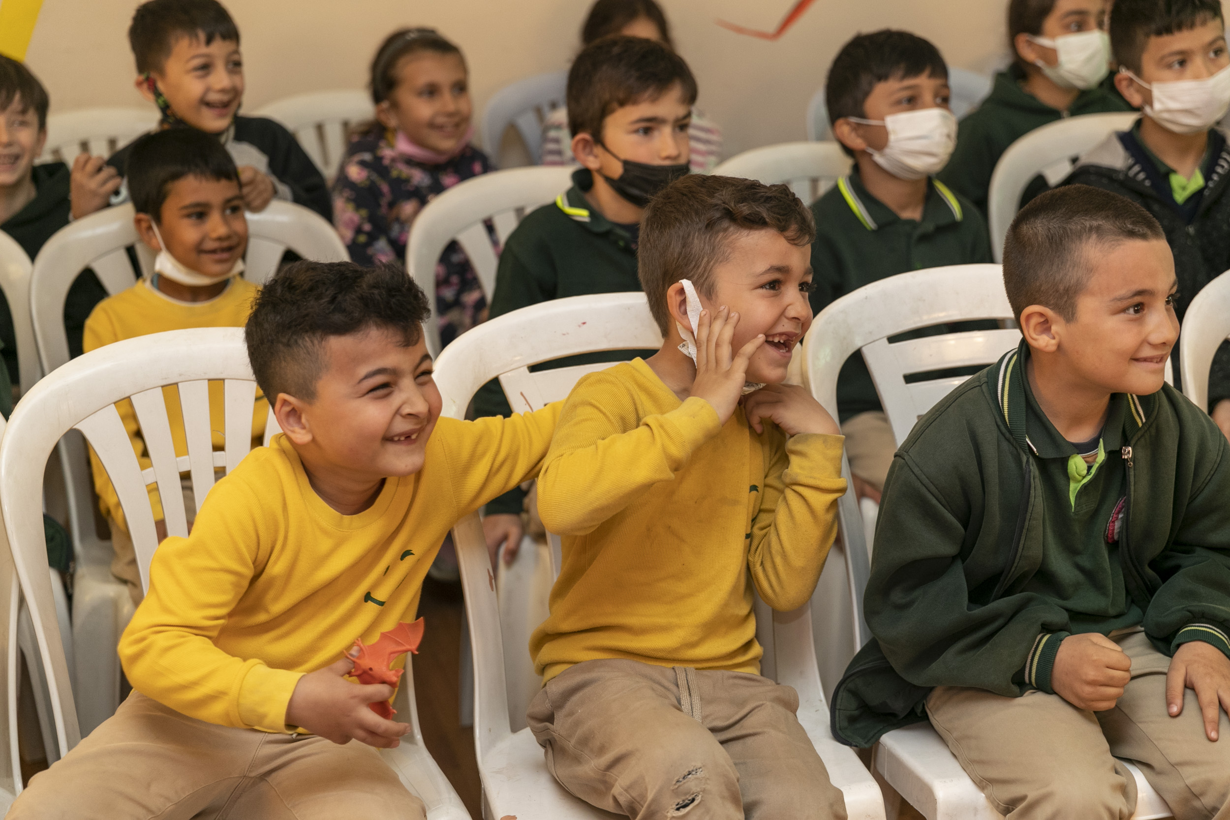 İlkokul 1’inci sınıfa giden çocuklar gösteriyi kahkahalar içerisinde seyretti. Çocuklardan Erva Baş, “Karagöz ve Hacivat izledim. Gölge oyunu oynadılar. Birbirleriyle kavga ettiler. Bebek kaydıraktan kaymak yerine Karagöz’ün üstüne atlıyordu. Okulumuza geldikleri için çok mutlu oldum. Bir kez izlemiştim. Ama bu daha da güzeldi” dedi.