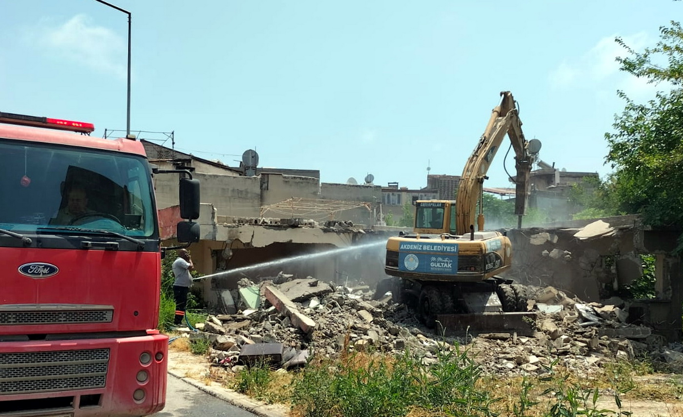 Akdeniz Belediyesi, halkın can ve mal güvenliğini tehdit etmesinin yanı sıra, kimi zaman madde bağımlılarının mekânına dönüşen ve görsel kirlilik oluşturan metruk yapılarla mücadelesini aralıksız sürdürüyor.