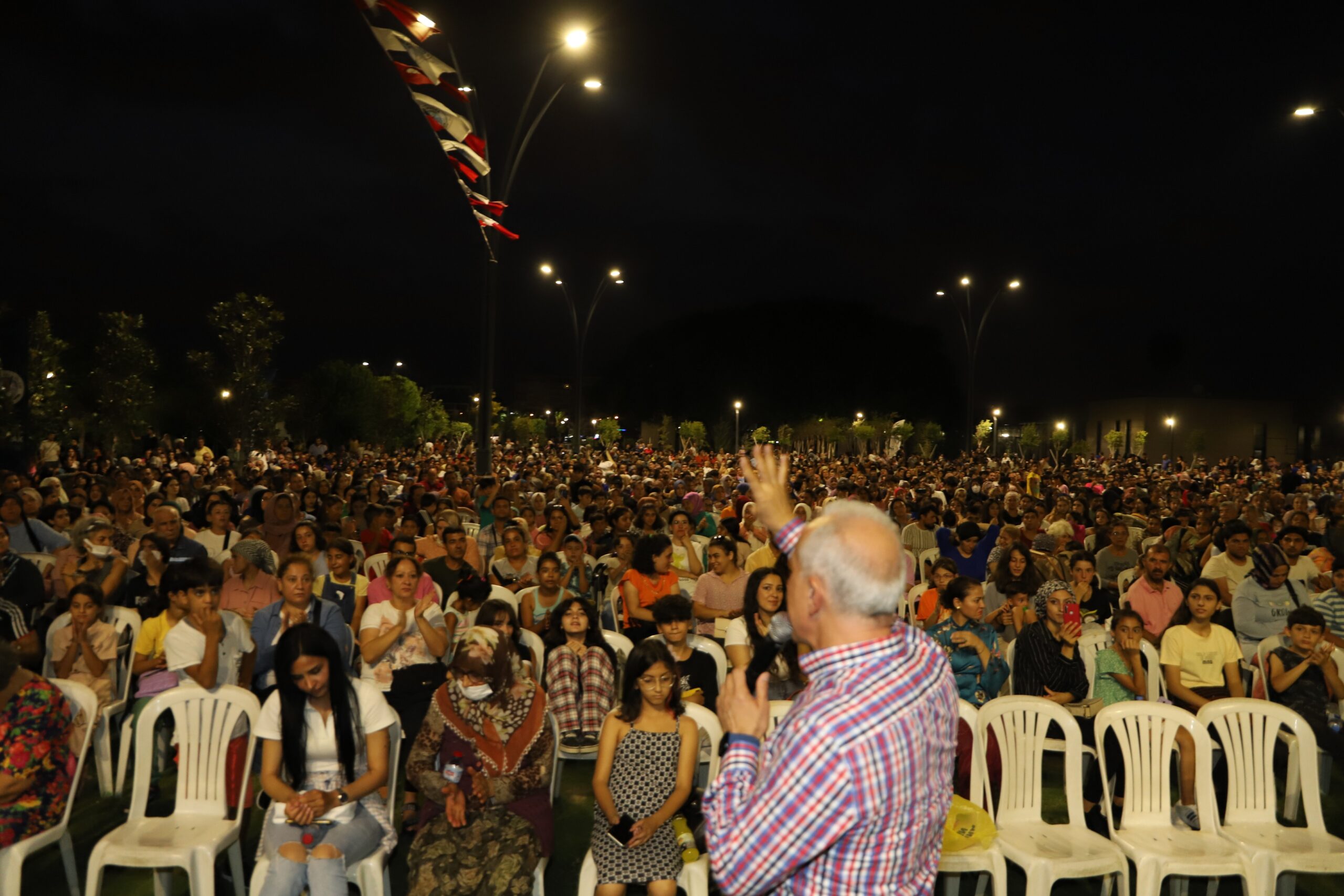 Mersin Millet Bahçesi sahil etabında gerçekleşen ücretsiz açık hava film gösterimine, genç-yaşlı, kadın-erkek her yaştan binlerce vatandaş adeta akın etti. Gösterim için hazırlanan binlerce sandalyede yer bulamayan seyirciler, çimenlere oturarak filmi izledi. Etkinliğe aileler de büyük ilgi gösterirken dev ekranda saat 20:00’de başlayan filmin gösterimi yoğun ilgi çekti. Film başlamadan önce, alanı dolduran vatandaşlara hitap eden Başkan Gültak; Akdenizli kadınlar, gençler ve çocuklar için hayata geçen açık hava film gösterimi, portatif yüzme havuzları, eğitim desteği, mesleki kurslar ve doğa gezilerinden bahsetti. “Akdeniz böyle değildi, bizimle birlikte değişmeye başladı” diyen Başkan Gültak; şöyle konuştu; “Açık hava film gösterimini, Mersin’e kazandırdığımız en güzel ve en büyük millet bahçelerinden birinde gerçekleştiriyor olmaktan ayrıca gurur ve mutluluk duyuyoruz. Yakında da inşallah itirazlara rağmen Çamlıbel Su Sporları Merkezi’ni de kentimize ve insanlarımıza kazandıracağız. Türkiye’nin en güzel su sporları merkezlerinden biri buraya geliyor. 70-80 yıllık iskeleler değişip yenileniyor. Mersin’in en büyük sorunlarından biri olan otopark sorunu da çözülüyor. Profesyonel balıkçıları da büyüyecek olan Karaduvar Limanı’na taşıyoruz. Balık-ekmek satan tekneleri de yeni yapılacak mendireğe taşıyoruz. Böylelikle içeriye 450 yatın sığacağı bir merkez haline geliyor.”