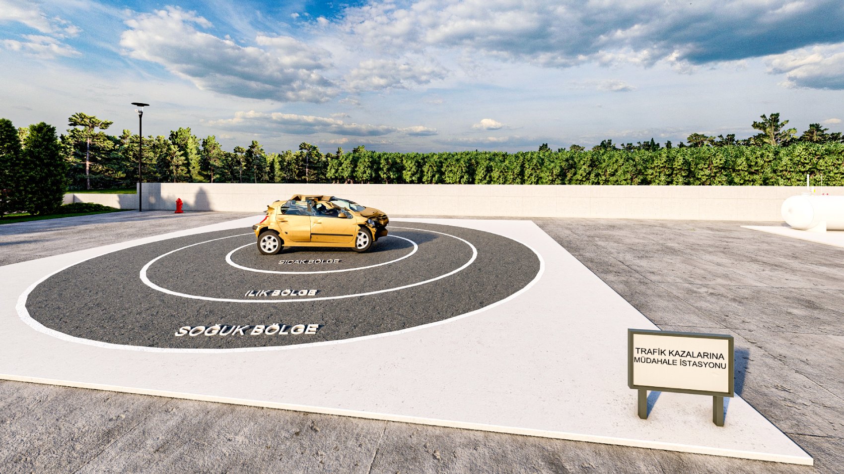 Mesleki Eğitim Salonu, Gözlem ve Atak İstasyonu (katı yakıt işletimli), Yangın Evi İstasyonu (Sıfır Görüş-Suni dumanlı-Gece Görüşlü Kamera ve Ses Takipli), Tanker Kazası Yangınlarına Müdahale İstasyonu (LPG işletimli), Kuyu Operasyonları İstasyonu, Yüksek Açı Kurtarma İstasyonu, Trafik Kazalarına Müdahale İstasyonu, Kentsel Arama Kurtarma İstasyonu, İtfaiye Sporları Eğitim ve Tırmanma Kulesi, Dengede Yürüme Tahtası, Yüksek Atlama Tahtası ve Köpek Eğitim Merkezi bulunacak.