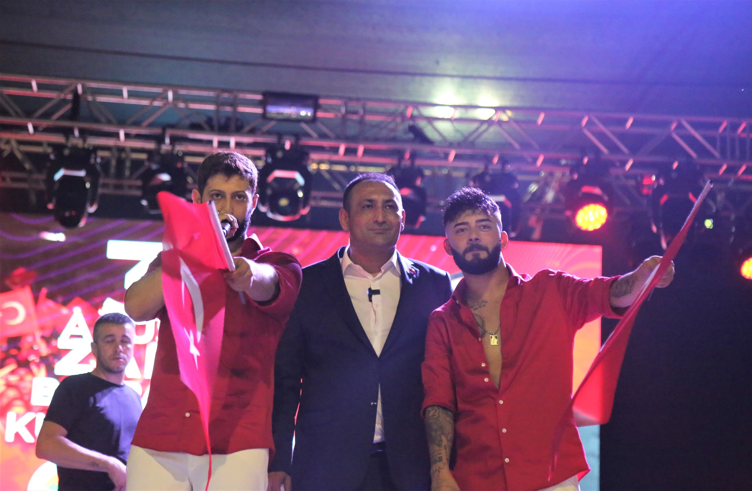 Başkan Yılmaz’ın konuşmasının ardından sahneye çıkan sevilen sanatçılar Kurtuluş Kuş ve Burak Bulut, sahne performanslarıyla unutulmaz bir geceye imza attı.