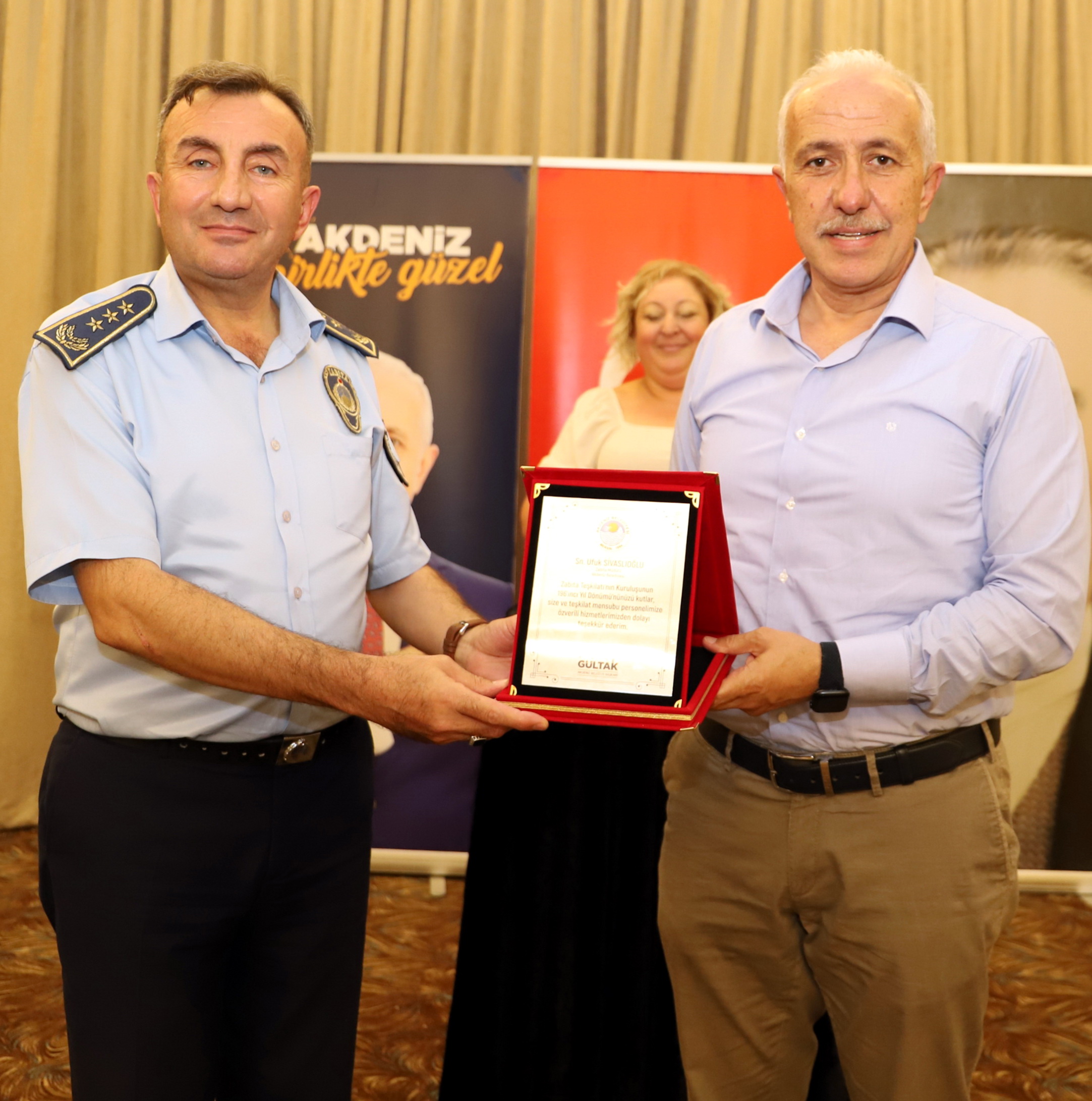 Akdeniz Belediye Başkanı M. Mustafa Gültak, 1-7 Eylül tarihleri arasında kutlanan Zabıta Haftası dolayısıyla, Zabıta Müdürlüğü’nde görevli personel ile bir otelde düzenlenen yemekli etkinlikte bir araya geldi.
