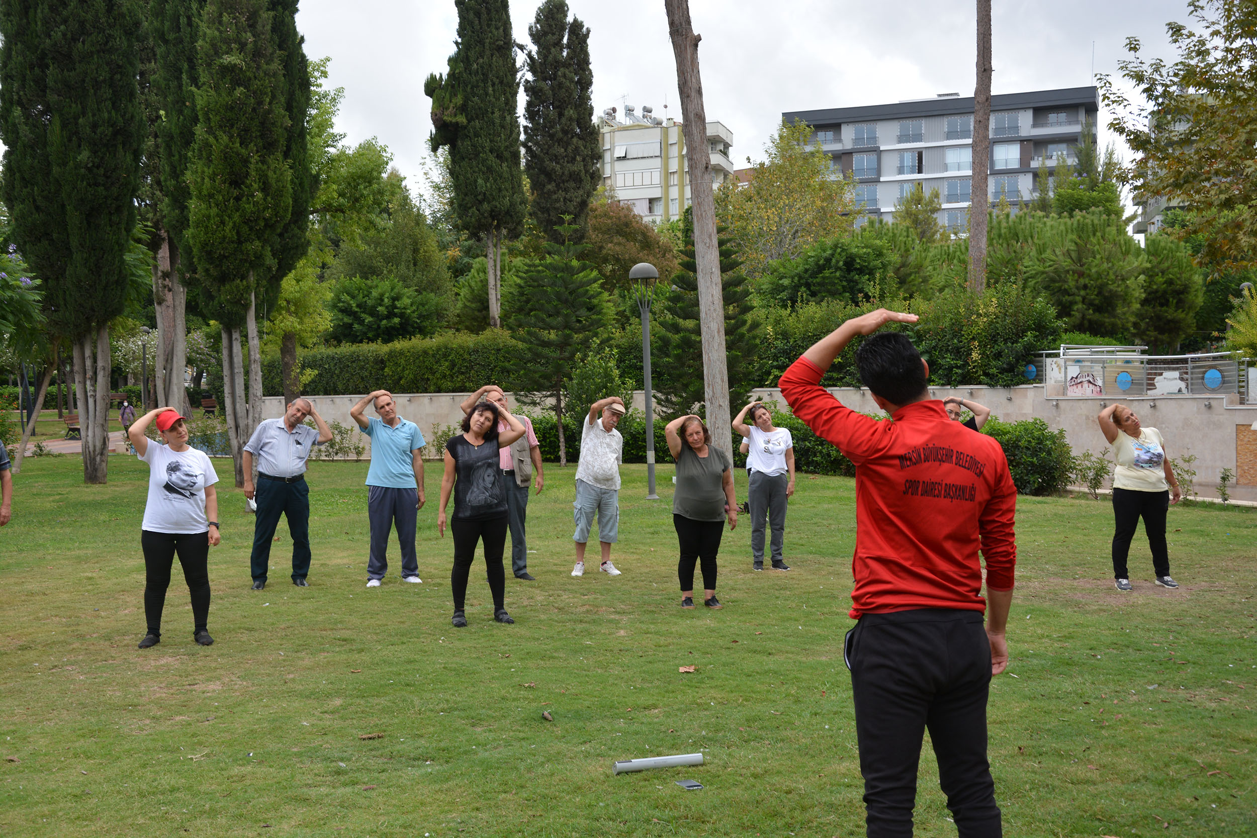Büyükşehir Belediyesi Gençlik ve Spor Hizmetleri Dairesi Başkanlığı’nda görevli spor hocası Gökay Aküzel’in nezaretinde düzenlenen sabah sporu aktivitesine iştirak eden Tarsus Emekli Evi üyeleri; egzersiz, germe, açma hareketlerini uyum içerisinde yerine getiriyorlar ve müzik eşliğinde keyifli dakikalar yaşıyorlar.