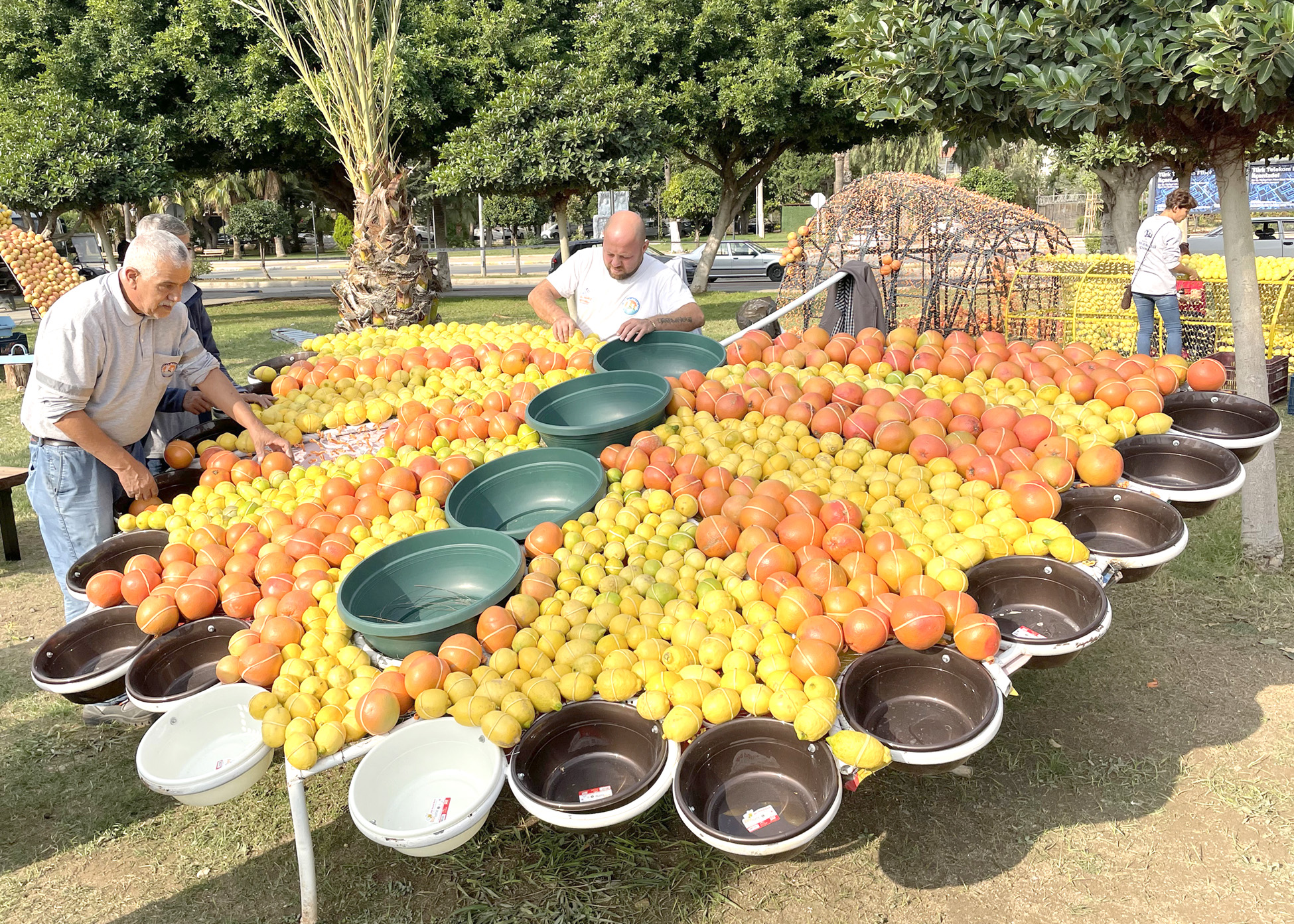 Festival kapsamında görücüye çıkan ejderha, balina, ahtapot, denizaltı, helikopter, maymun, uçak ve tren gibi figürlerin süslenmesinde canlı meyvelerin kullanıldığını anımsatan Vali Pehlivan, “Bu çok nadir, ülkemizde örneği olmayan bir uygulama. Burada kullanılan limon, greyfurt, mandalina ve portakallar kesinlikle ziyan edilmiyor. Bunlar vatandaşlarımıza dağıtılıyor. Şuanda da 100 ton civarında meyve kullanımı gerçekleşmiş. Kesinlikle bunlar ziyan edilmiyor, vatandaşlarımıza dağıtımı sağlanıyor, festivalin de bir hediyesi oluyor” şeklinde konuştu.