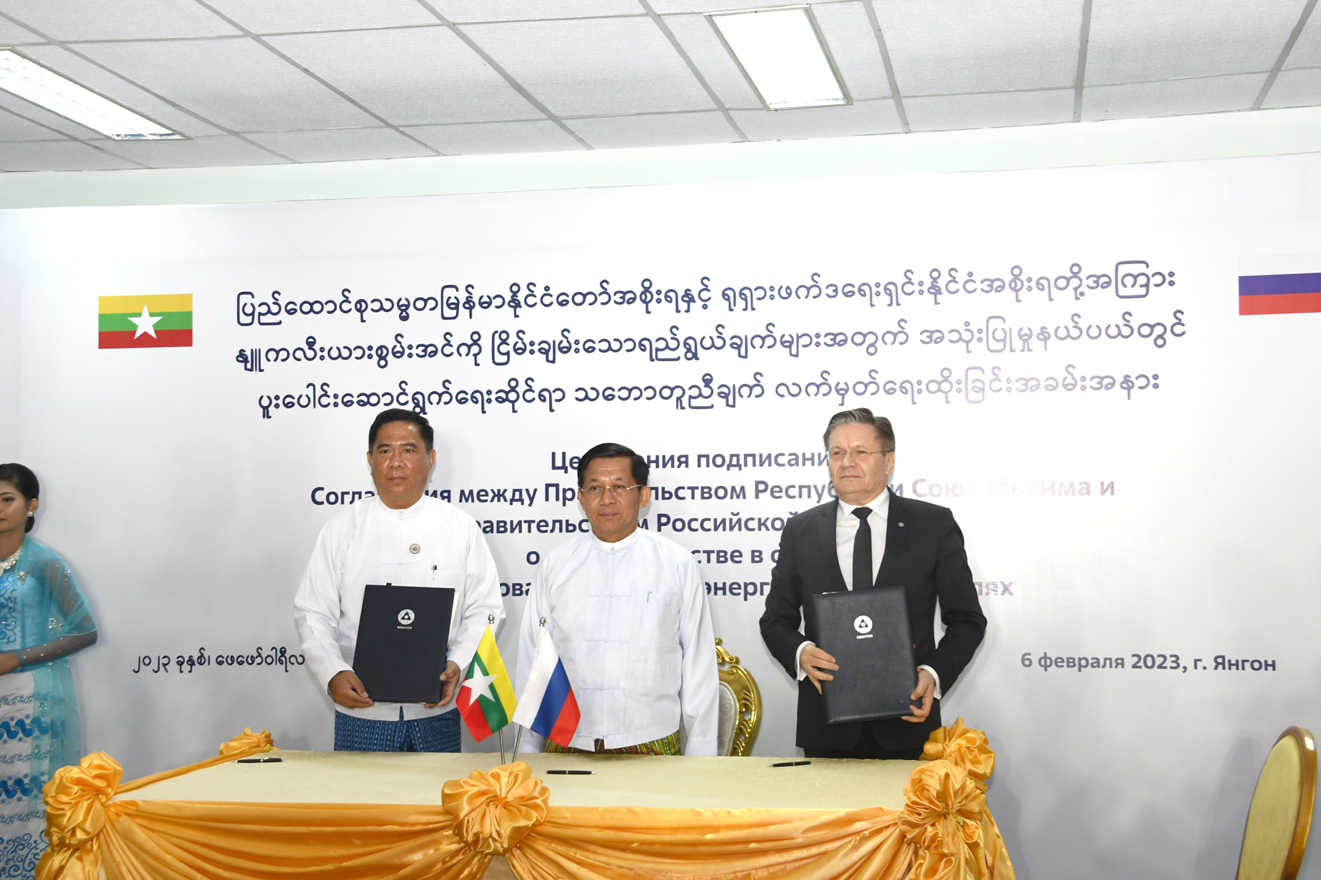 Rusya Devlet Nükleer Enerji Kuruluşu Rosatom’un Genel Müdürü Aleksey Likhachev ve Myanmar Bilim ve Teknoloji Bakanı Dr. Myo Thein Kyaw, nükleer enerjinin barışçıl amaçlarla kullanımı alanında iş birliğine ilişkin Hükümetlerarası Anlaşma’ya imza attı.