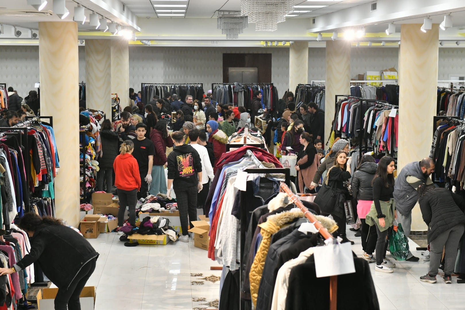 Depremin ilk gününden itibaren tüm imkanlarıyla çalışmalarını sürdüren Yenişehir Belediyesi, bölgeye tırlarla temel ihtiyaç malzemelerini sevk ederken, kente gelen afetzedeleri de yalnız bırakmıyor. Yardım toplama merkezi olarak hazırlanan Yenişehir Belediyesi Atatürk Kültür Merkezi’nde giysi evi kuruldu. 200’e yakın gönüllünün destek verdiği çalışmalarla gün boyu afetzedelere hizmet verildi. Depremin etkilediği illerden Mersin’e gelen vatandaşların talep ve ihtiyaçları dikkate alınarak hazırlanan giysi evinde her yaşa uygun giysi ve ayakkabı bulunuyor. Bağışlanan eşyalar Yenişehir Belediyesi ekipleri ve gönüllüler tarafından tek tek tasnif ediliyor. Yenişehir Belediyesinin kurduğu giysi evi haftanın her günü 09.00-21.00 saatleri arasında hizmet verecek.