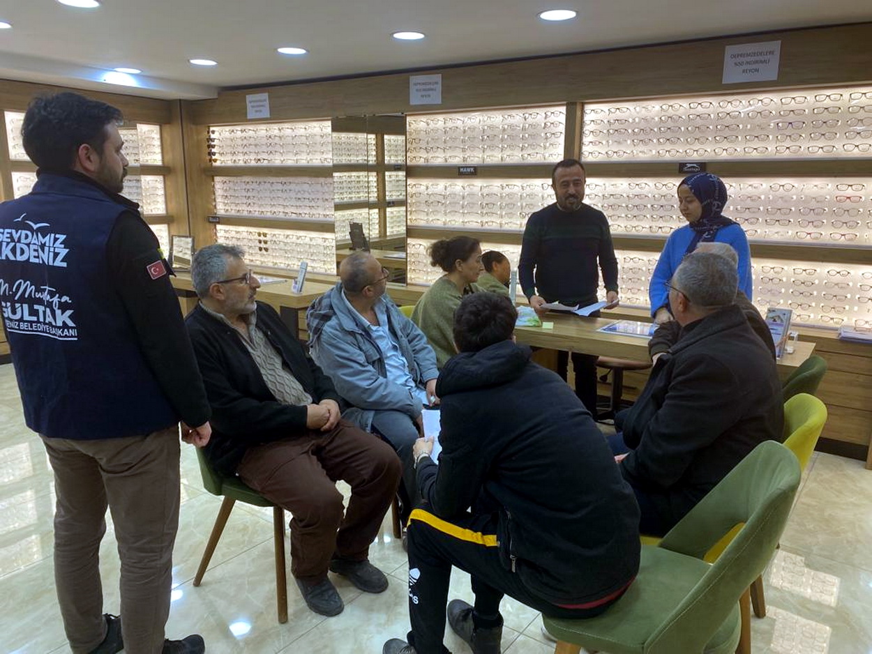Öte yandan Akdeniz Belediyesi kültür ve sanat evlerinde kalan ve gözlük ihtiyacı olan afetzede vatandaşlar da belediyeye ait araçlarla şehir merkezinde faaliyet gösteren optikçilere götürülüp gözlük ihtiyaçları karşılanıyor, sonrasında tekrar ağırlandıkları kültür sanat evlerine bırakılıyor.