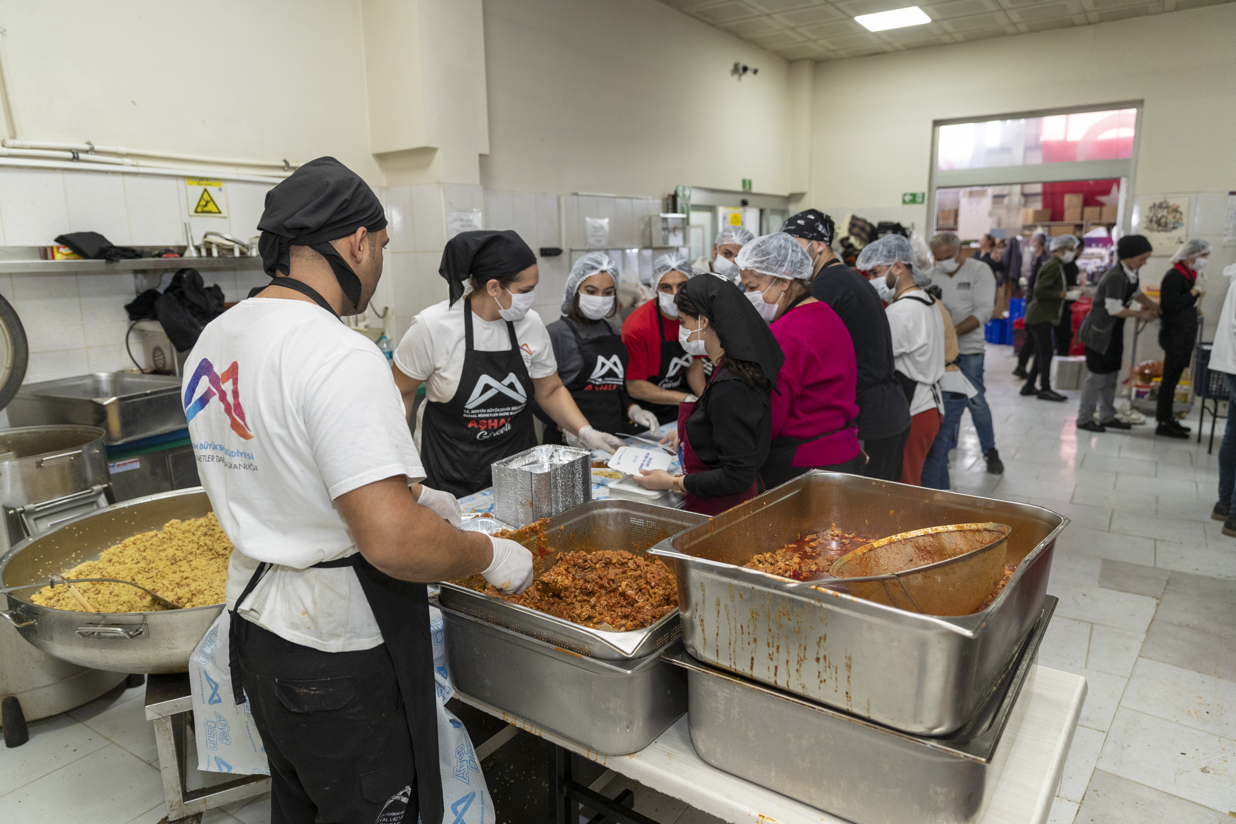 Aşhane’de yemek yapımında görev alan Halk Oyunları ekibinden Emre Vuralış, “Burada sabah, öğle ve akşam olmak üzere 30 bini aşkın yemekle depremzede ailelere destek olmaya çalışıyoruz. Elimizden geleni sarf etmeye çalışıyoruz, umarım yerine ulaşıyordur. Şu anda halihazırda olan gösterilerimiz, provalarımız ve etkinliklerimize ara verdik. Burada yardımcı oluyoruz, hayat normale dönene kadar yanlarında olmaya çalışacağız, elimizden geleni yapmaya çalışacağız” dedi.