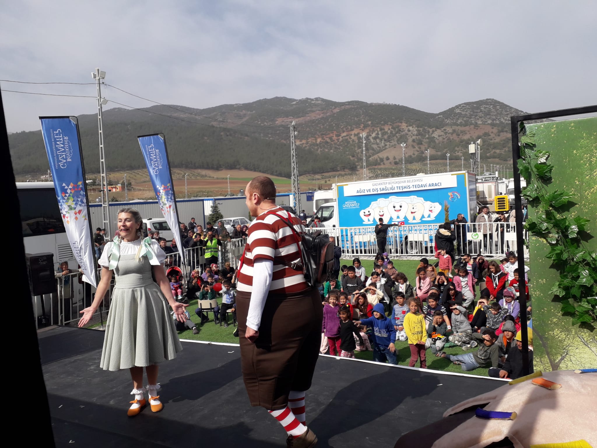 Mersin Devlet Opera ve Balesi, yaşadığımız deprem felaketi sonrasında depremden etkilenen şehirlerimizdeki çocuklarımızın yaralarını sarmak, onlara moral vermek ve bir nebze olsun yüzlerini güldürebilmek amacıyla gezici kamyon sahnesinde ve kapalı alanlarda çocuklarla buluşmaya devam ediyor. Geçtiğimiz hafta Gaziantep, Osmaniye ve Nurdağı’nda moral ve motivasyon amaçlı gerçekleşen ve 1350 çocuğa ulaşan etkinlikler sonrasında ise bu hafta;
