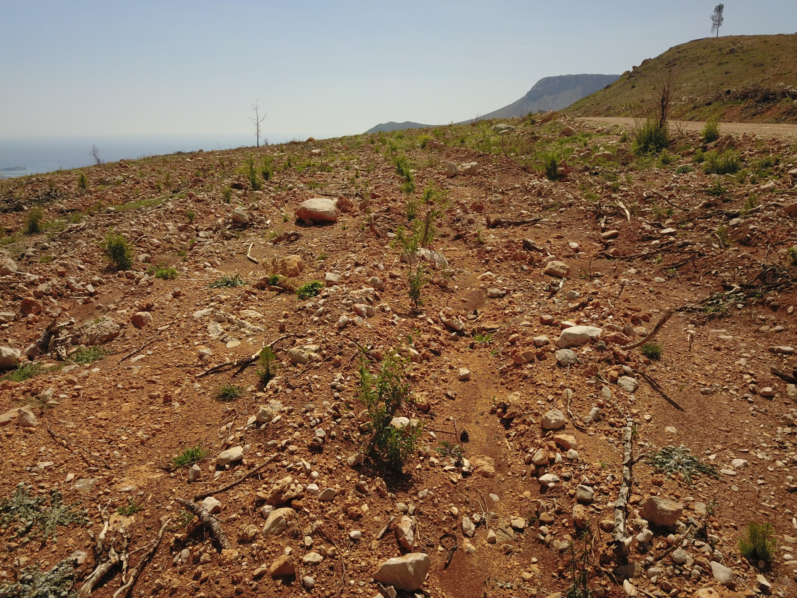 Mersin Orman Bölge Müdürlüğü, Silifke Orman İşletme Müdürlüğü, Yeşilovacık Şefliği sorumluluk alanındaki Işıklı Köyü civarında, 2021 yılında yangından zarar gören ormanlık alanlara dikilen badem ve keçiboynuzu fidanları boy göstermeye başladı.