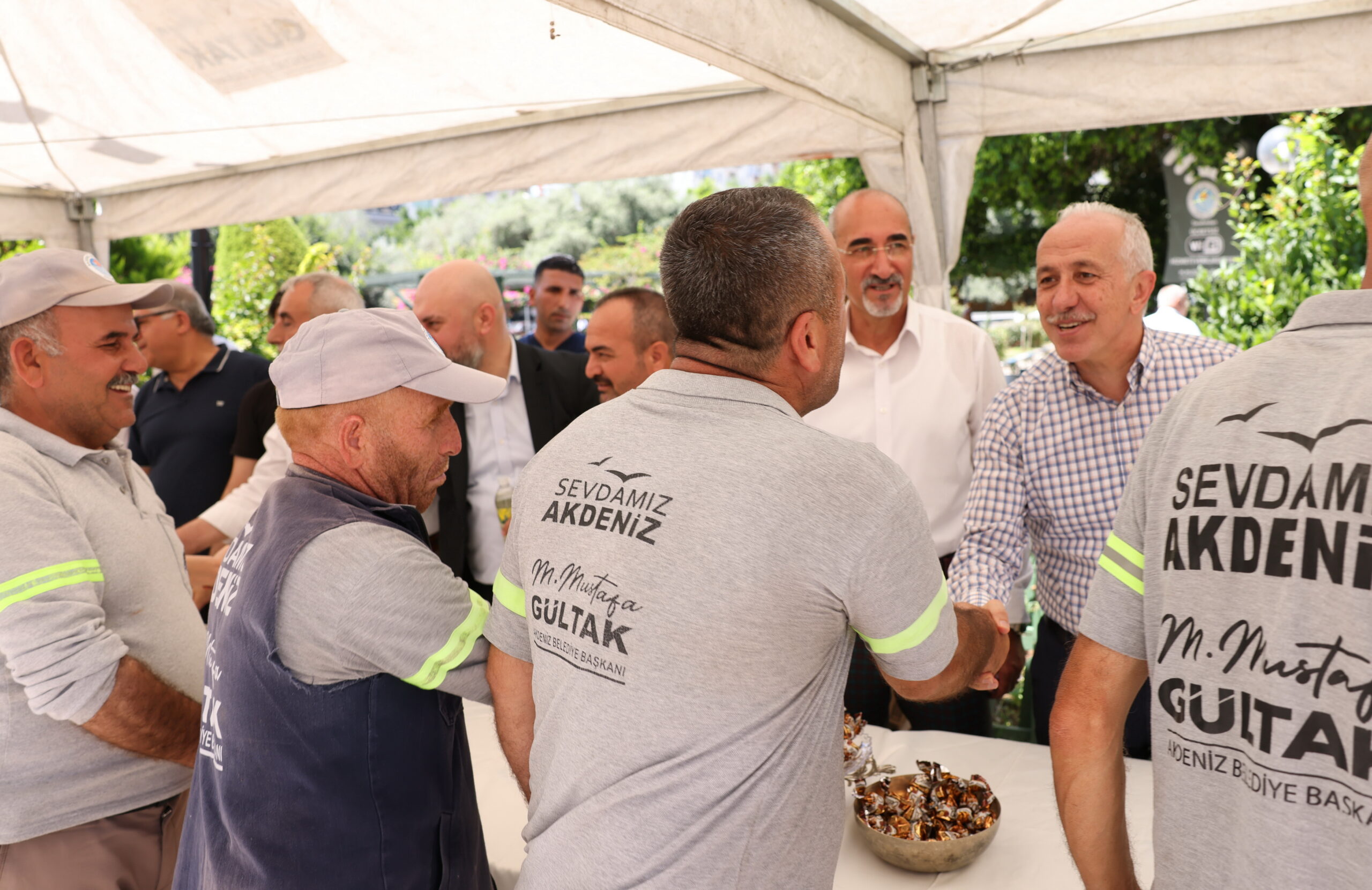 Akdeniz Belediye Başkanı Mustafa Gültak, belediye hizmet binası önündeki parkta düzenlenen merasimde, Başkan Yardımcıları, Meclis Üyeleri ve birim müdürleri ile birlikte, kurum personeliyle bayramlaşarak şeker ve kolonya ikram etti. Törene tanık olan bazı vatandaşlar da sıraya girip Başkan Gültak ile bayramlaştı. Merasimin ardından kısa bir açıklama yapan Başkan Mustafa Gültak, 9 günlük bayram tatilinin başlayacağını belirterek; “Her bayram olduğu gibi bugün de Kurban Bayramı vesilesiyle belediyemizin emekçileri ile bayramlaştık. Başta personelim olmak üzere, Akdeniz’de, Mersin’de, Türkiye ve tüm dünyada kurban bayramını kutlayacak Müslümanların bayramını tebrik ediyorum. Tüm vatandaşlarımızın, aileleriyle birlikte sağlık, güzellik ve huzur içinde güzel bir bayram geçirmelerini diliyorum” ifadelerini kullandı.