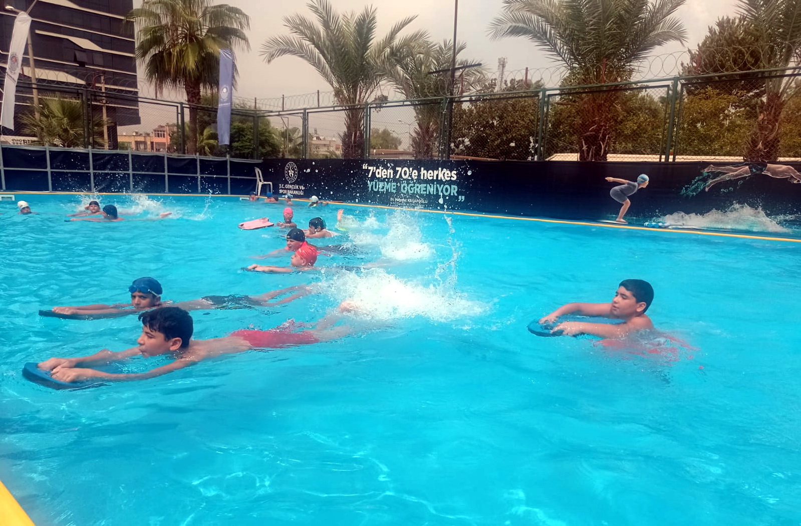 Kültür ve Sosyal İşler Müdürlüğü’nün düzenlediği ve kontenjanlarla sınırlı olacak yüzme kursuna 2010-2016 arası doğumlu çocuklar başvuru yapabilir. Akdeniz ilçe sınırlarında ikamet eden ailelerin başvurularının alınacağı kurs sayesinde çocuklar, hem eğlenecek hem de yüzmeyi öğrenecek. Yüzme kursu, uzman eğitmenler eşliğinde Madımak Parkı içinde bulunan belediyeye ait halı saha içinde kurulacak portatif havuzda verilecek.