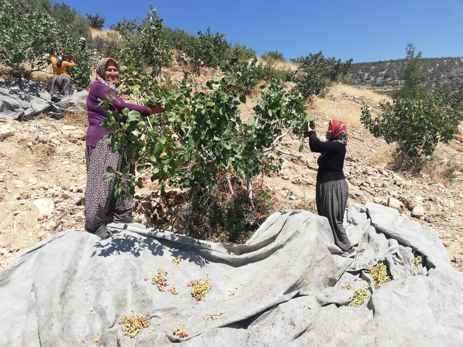 Orman Genel Müdürlüğümüz tarafından başlatılan gelir getirici tür ağaçlandırmaları kapsamında Mut İlçesi Geçimli Köyünde beş yıl önce dağıtımı yapılan Antep Fıstığı ağaçları meyvelerini verdi.